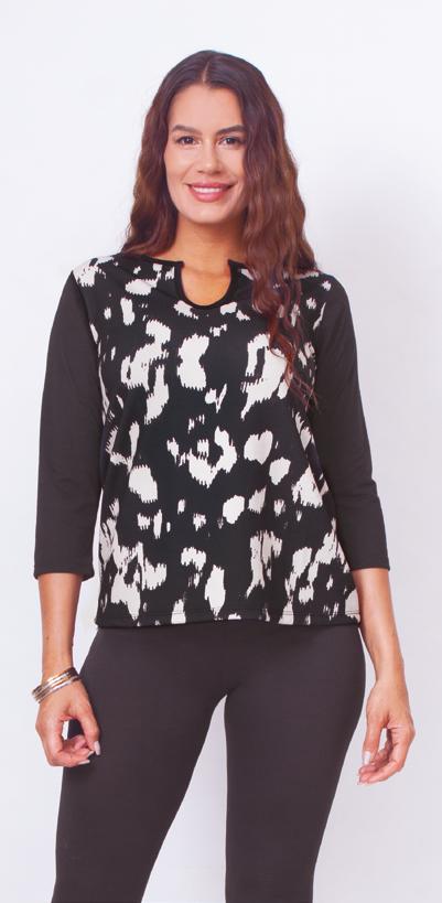 Confeccionado en viscosa con detalle en ruedo de mangas y frunce en escote.