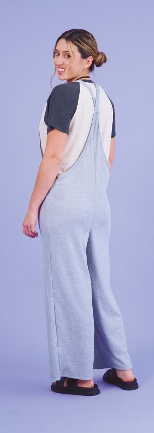 Confeccionada en viscosa azul con recortes en viscosa melange gris y viscosa verde.