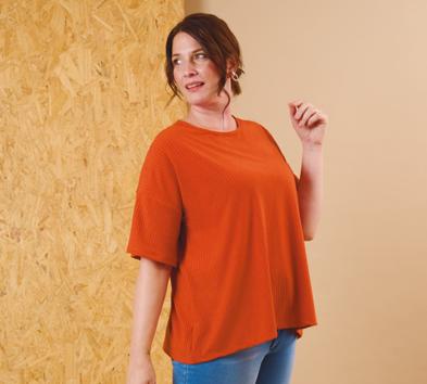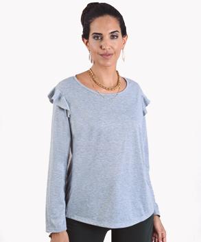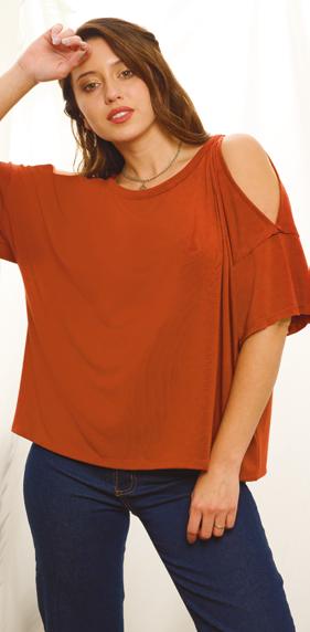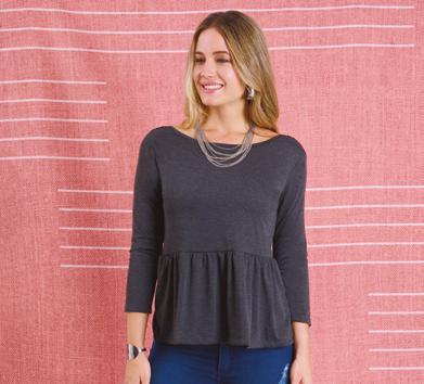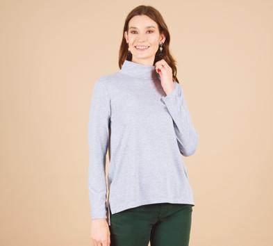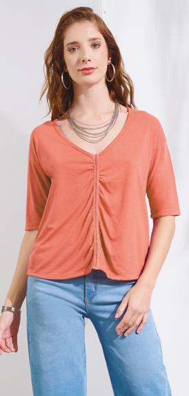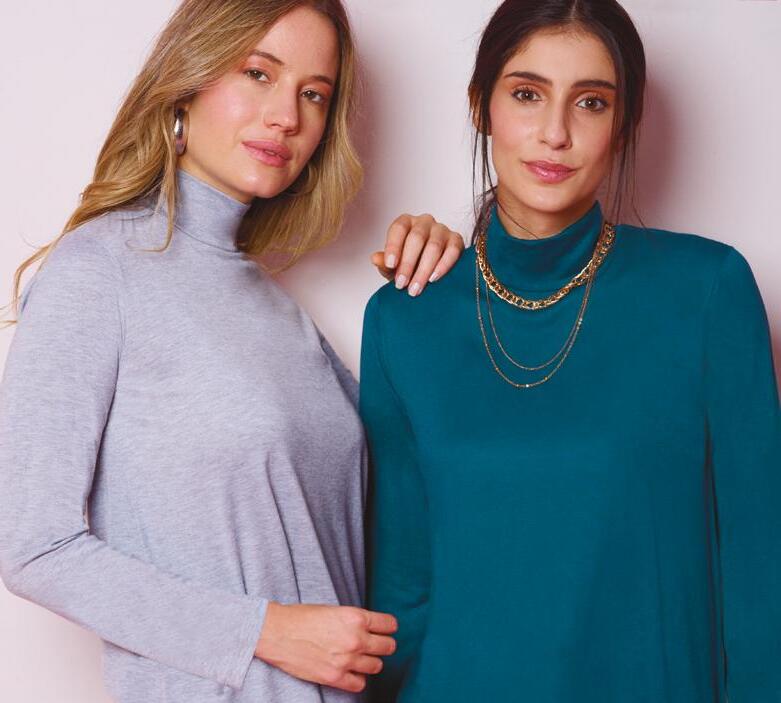 Confeccionada en viscosa azul, viscosa coral, viscosa melange aguamarina y viscosa gris topo melange.