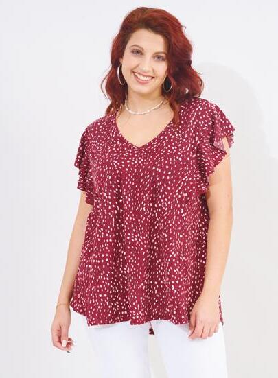 Confeccionada en seda fria estampada. Detalle de volados en mangas.