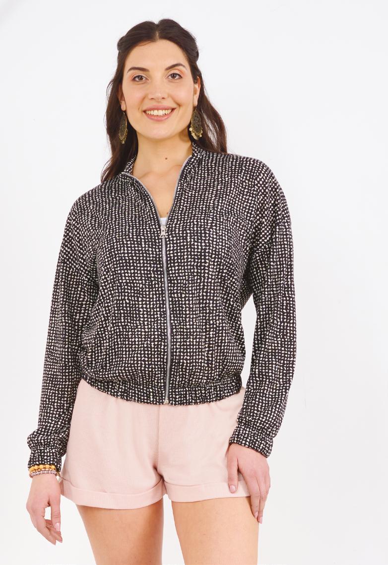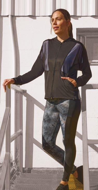Confeccionada en microfibra con spandex con recortes en delantero en microtul. Con capucha.