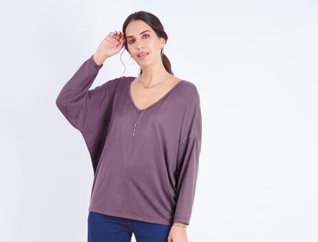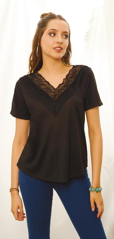 Confeccionada en viscosa petroleo con detalle de mangas a contratono negro.