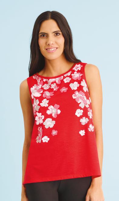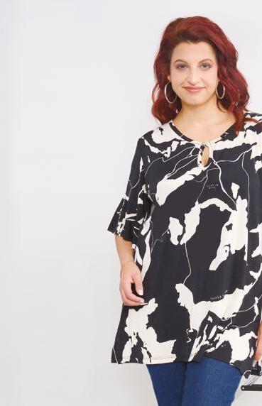 Confeccionada en viscosa estampada con breteles anchos. Línea amplia.