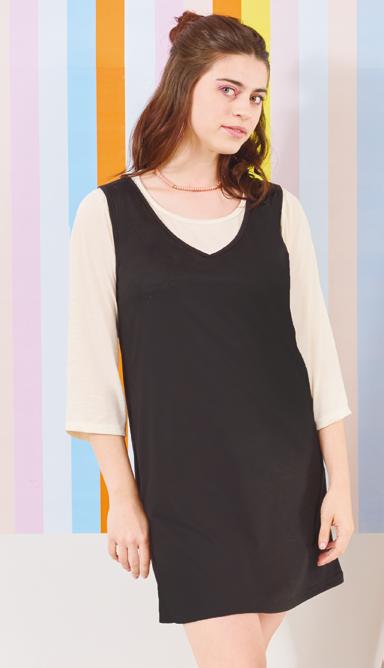 Confeccionada en morley elastizado con faldon en viscosa negra.