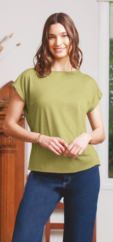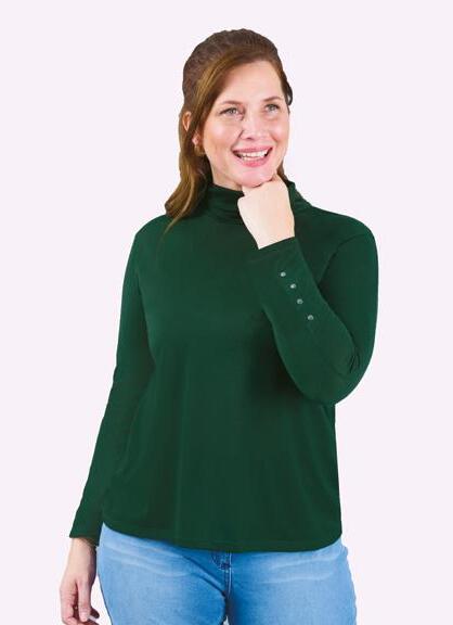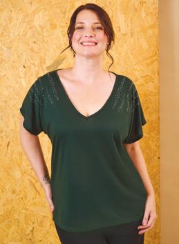 Confeccionada en viscosa flamé verde con recorte de mangas y cuello en viscosa negra.