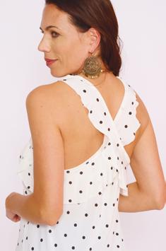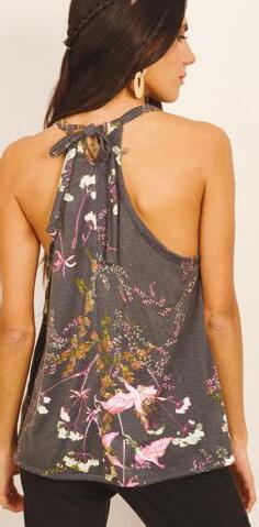 Confecciondo en viscosa estampada con espalda abierta con lazo.