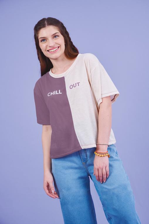 Confeccionado en viscosa con melange gris topo. Detalle de recortes en lila y fucsia.