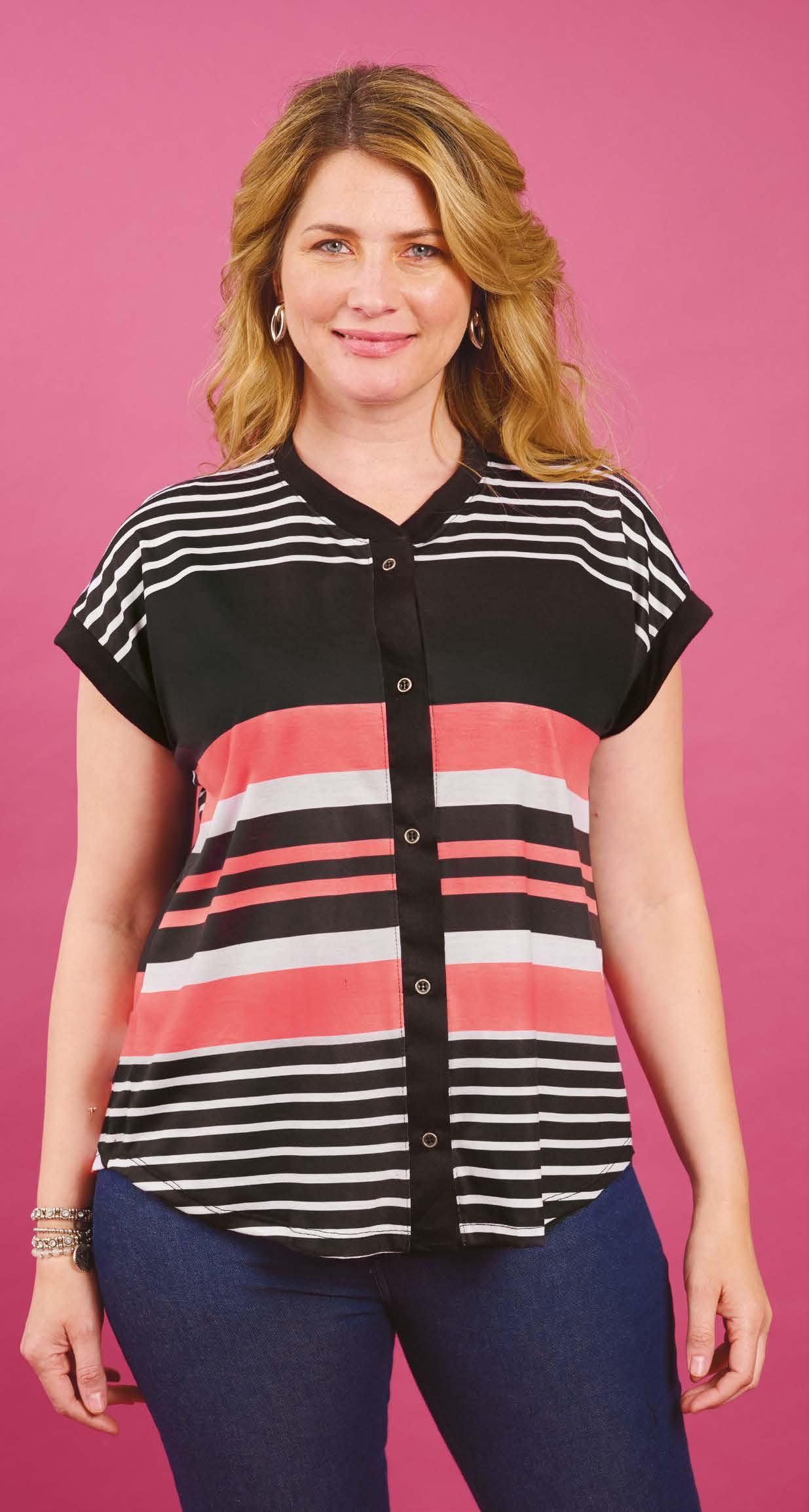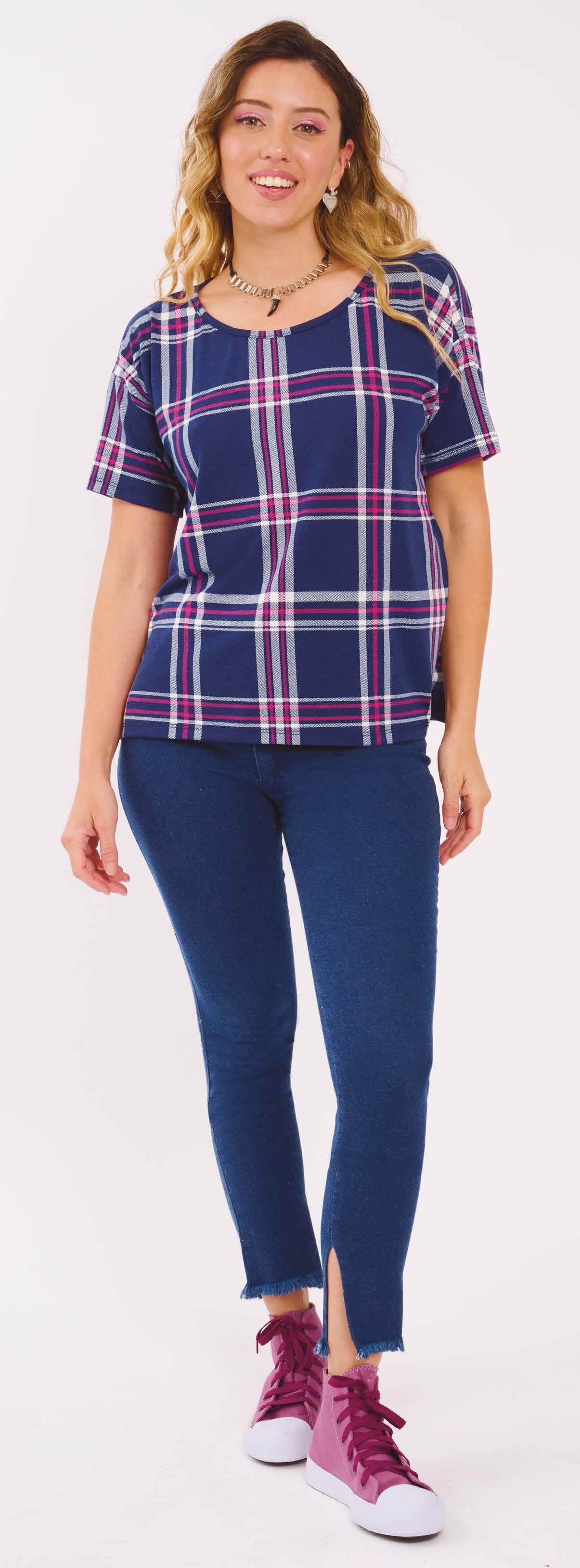PRECIO REGULAR $1965 $1179 ¡Ahorrá $786! CHOMBA ART. B423-30 Confeccionada en viscosa estampada raye petroleo con recorte superior y puños en azul. Color: Bicolor (31) Talles: 2 - 3 - 4 - 5 204