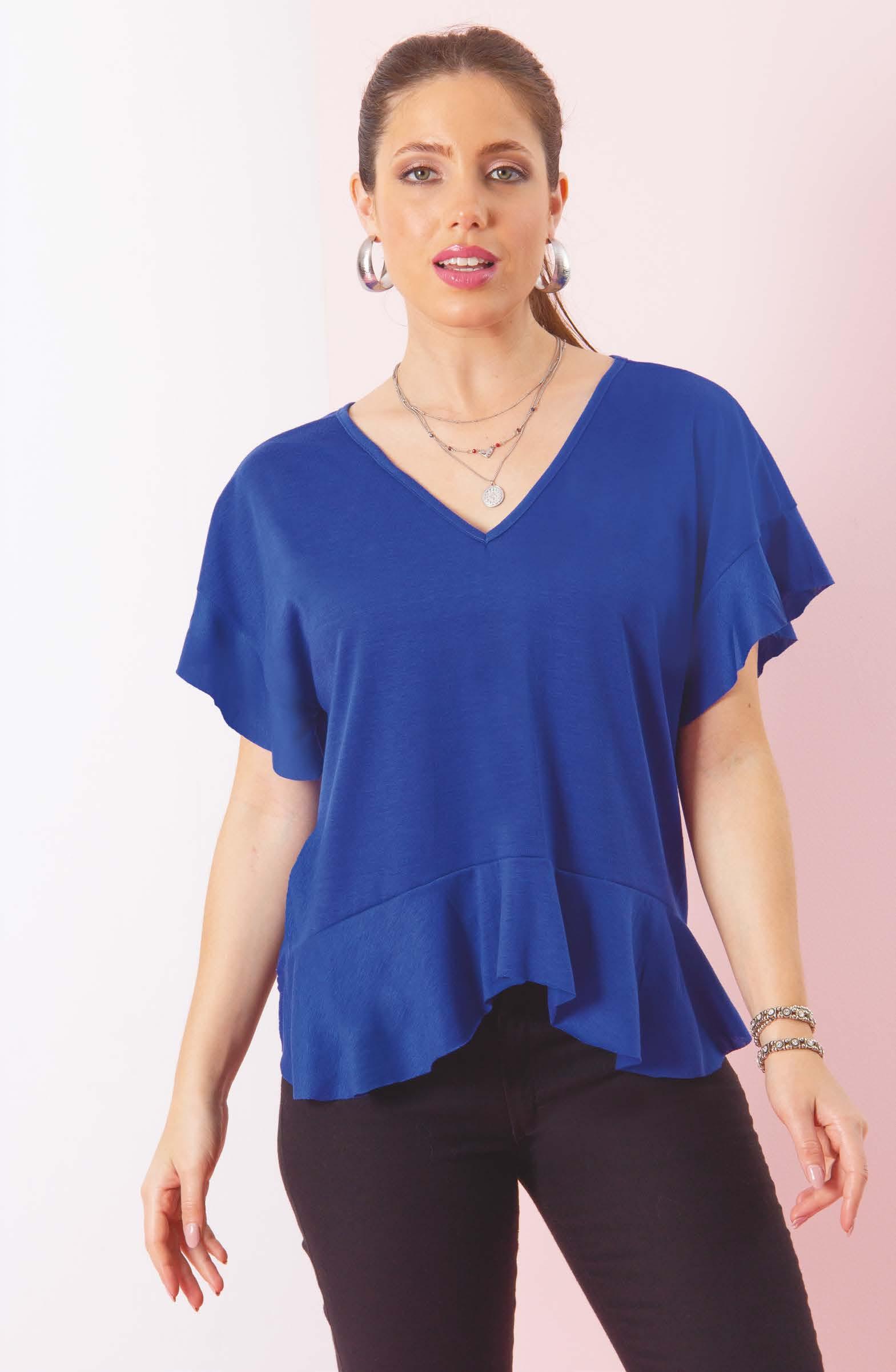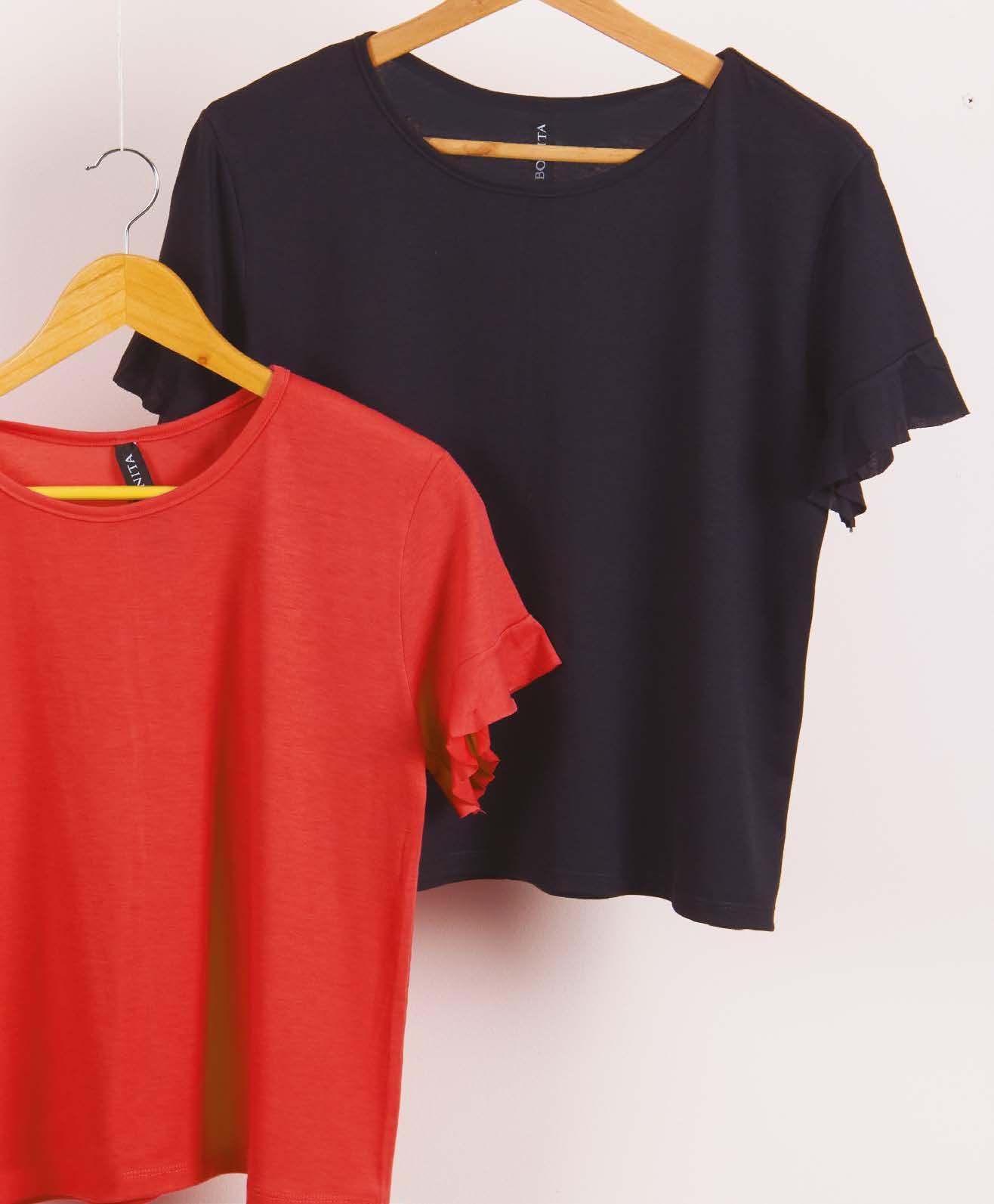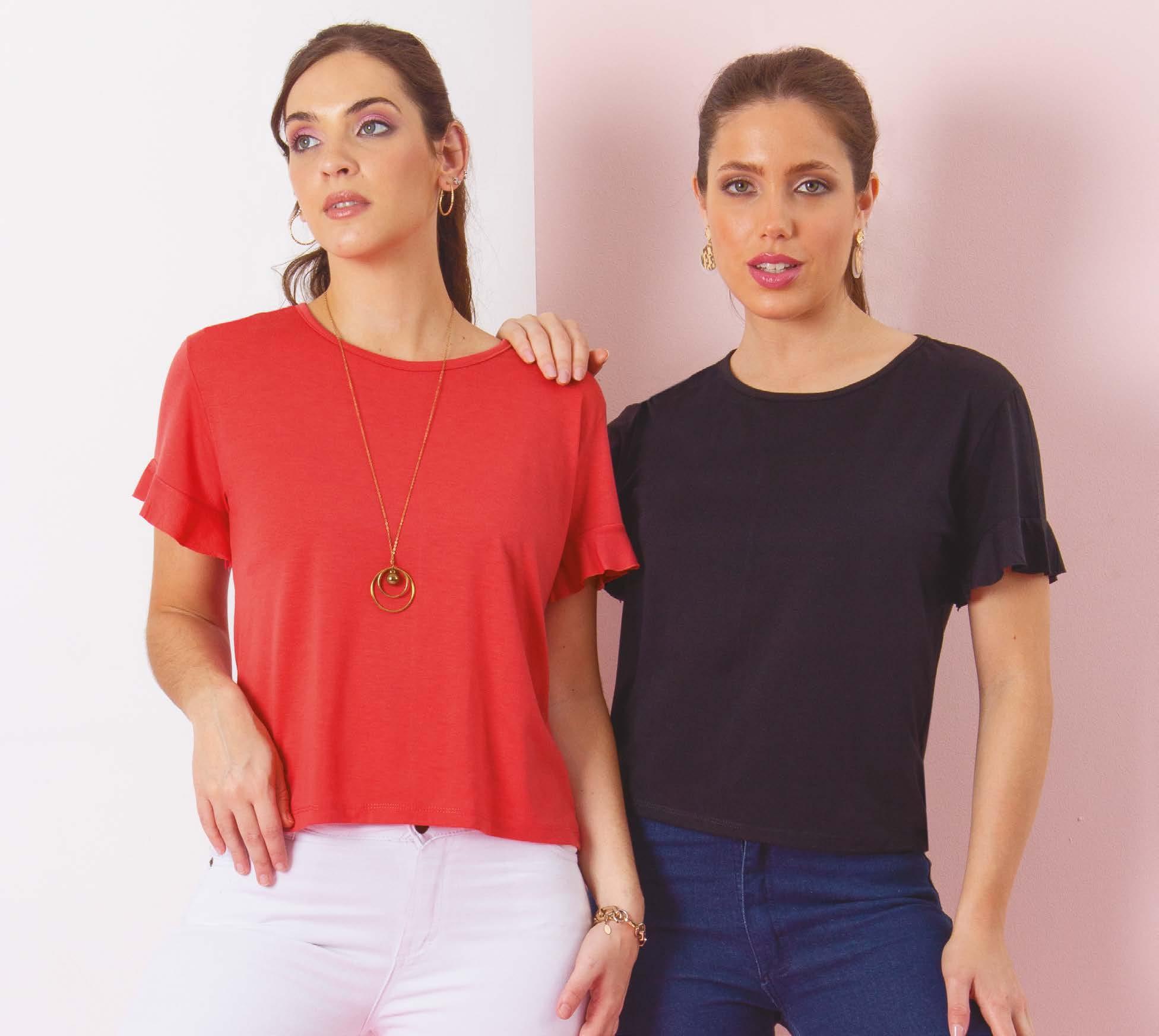 en viscosa con volado en delantero. Línea clásica. Color: Negro (02) Talles: 1- 2 - 3 - 4 PRECIO REGULAR $980 $539 ¡Ahorrá $441! REMERA