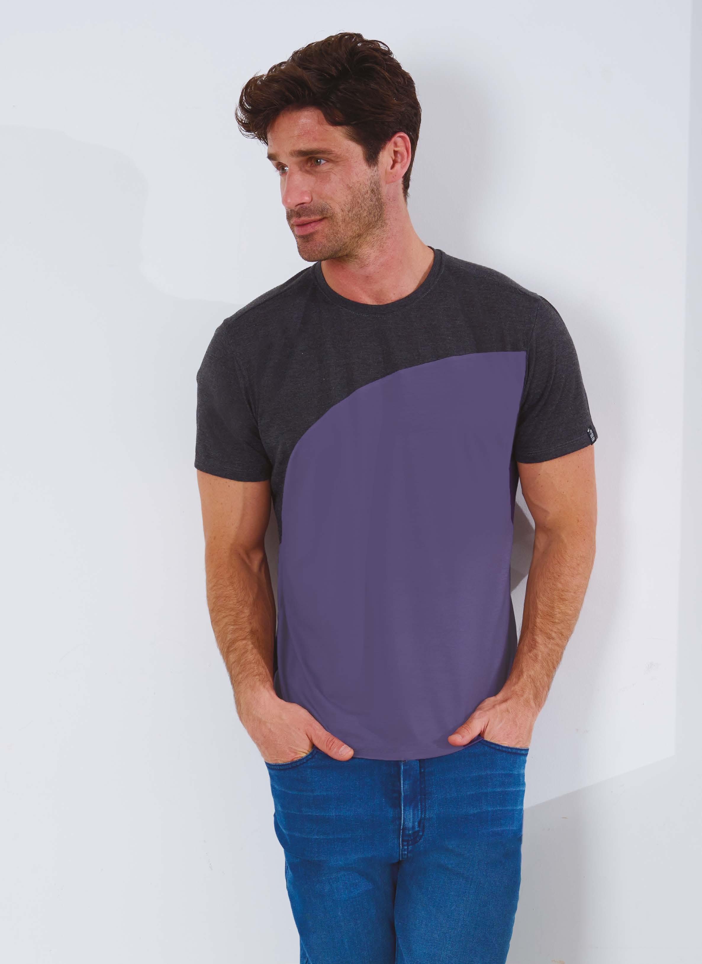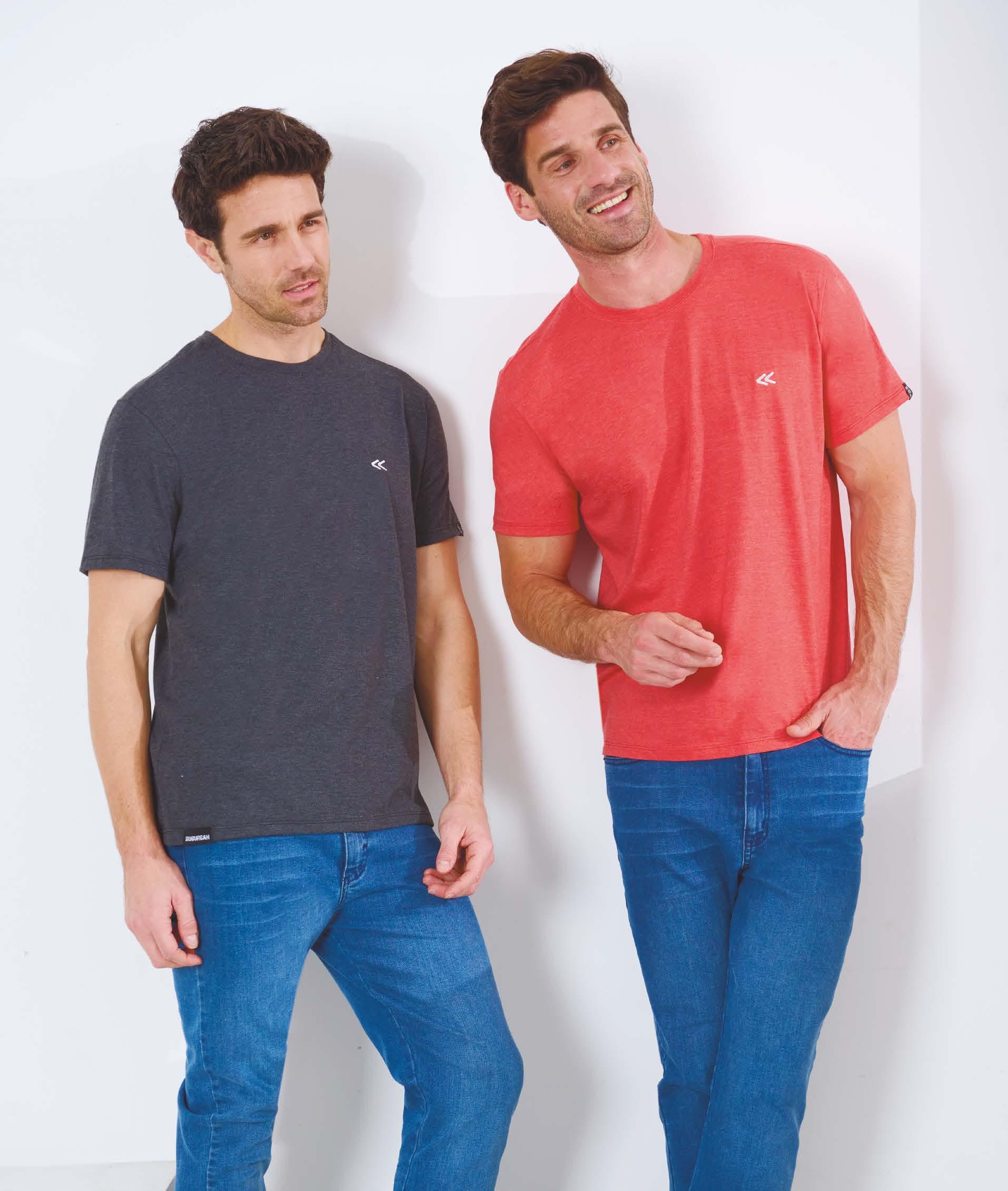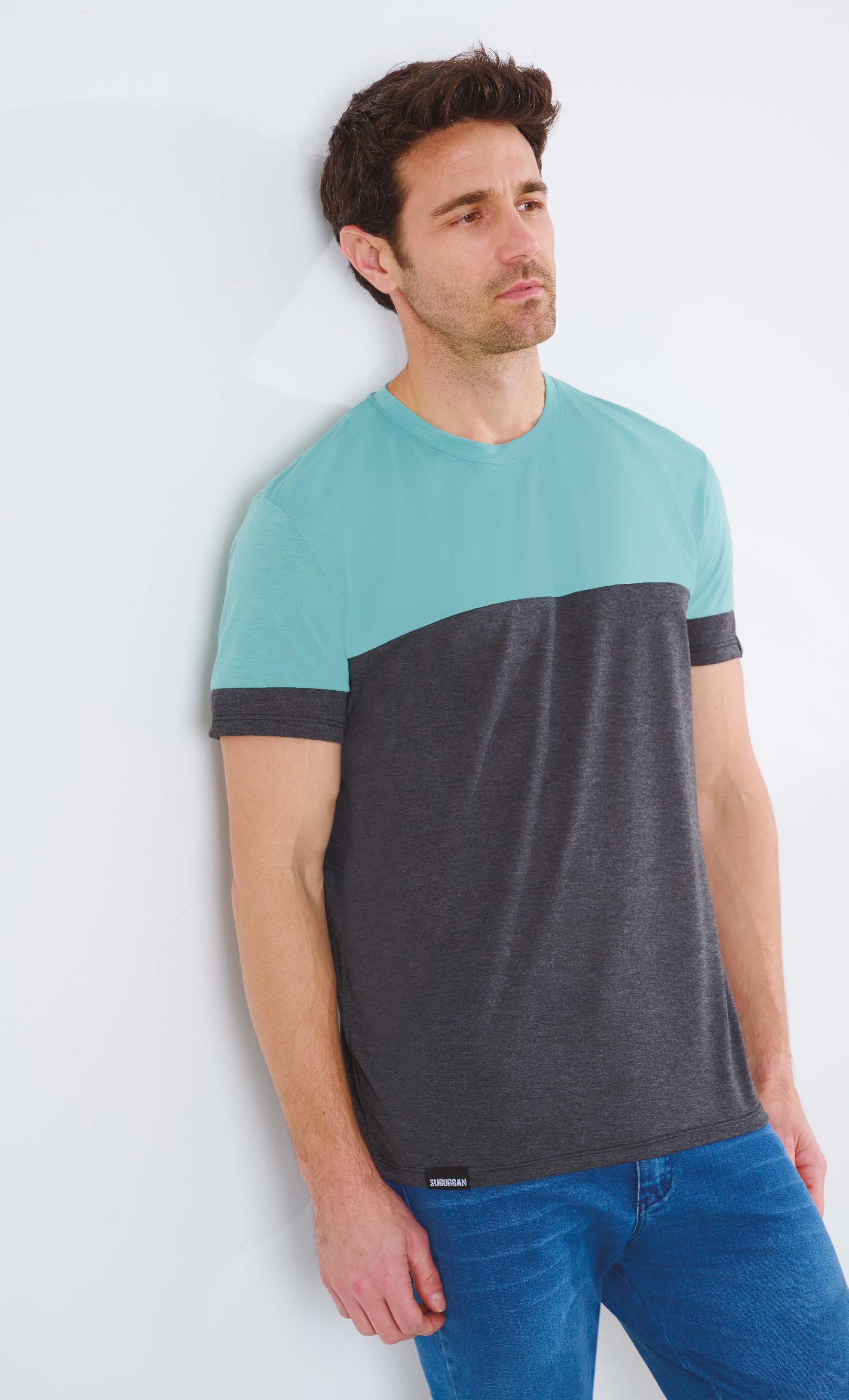 PRECIO REGULAR $962 $529 ¡Ahorrá $433! REMERA ART. B892-33 Confeccionada en Viscosa melange gris topo con recorte inferior en viscosa azul. Color: Bicolor (31) Talles: 2 - 3 - 4 - 5 195 HOMBRES