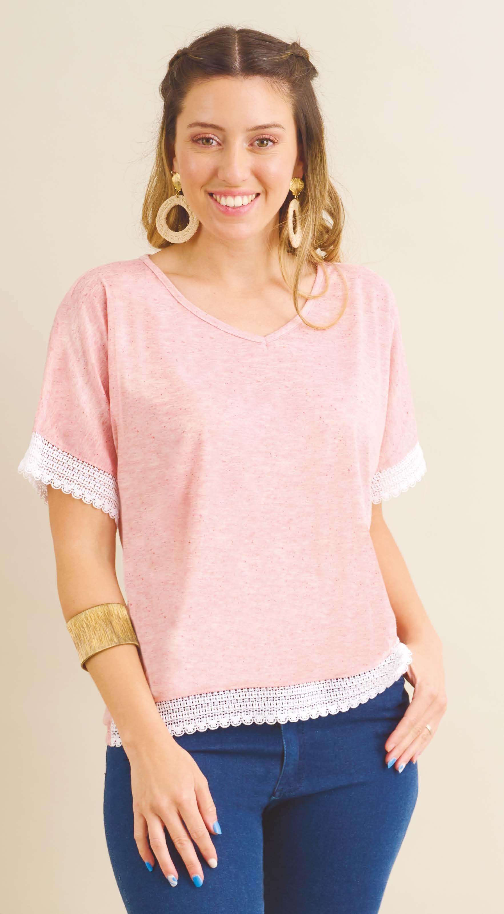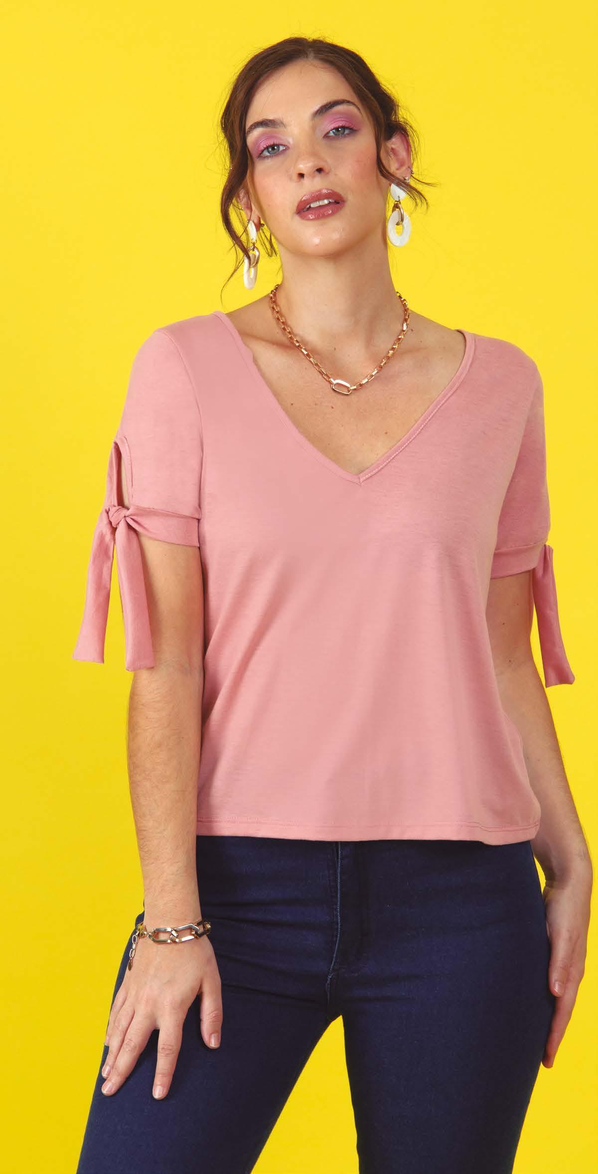 PRECIO REGULAR $891 $579 ¡Ahorrá $312! REMERA ART. B326-33 Confeccionada en viscosa flamé con recorte en delantero y mangas con frunce. Línea amplia. Color: Rosa (21) Talles: 2 - 3 - 4 - 5 PRECIO REGULAR $937 $609 ¡Ahorrá $328!
