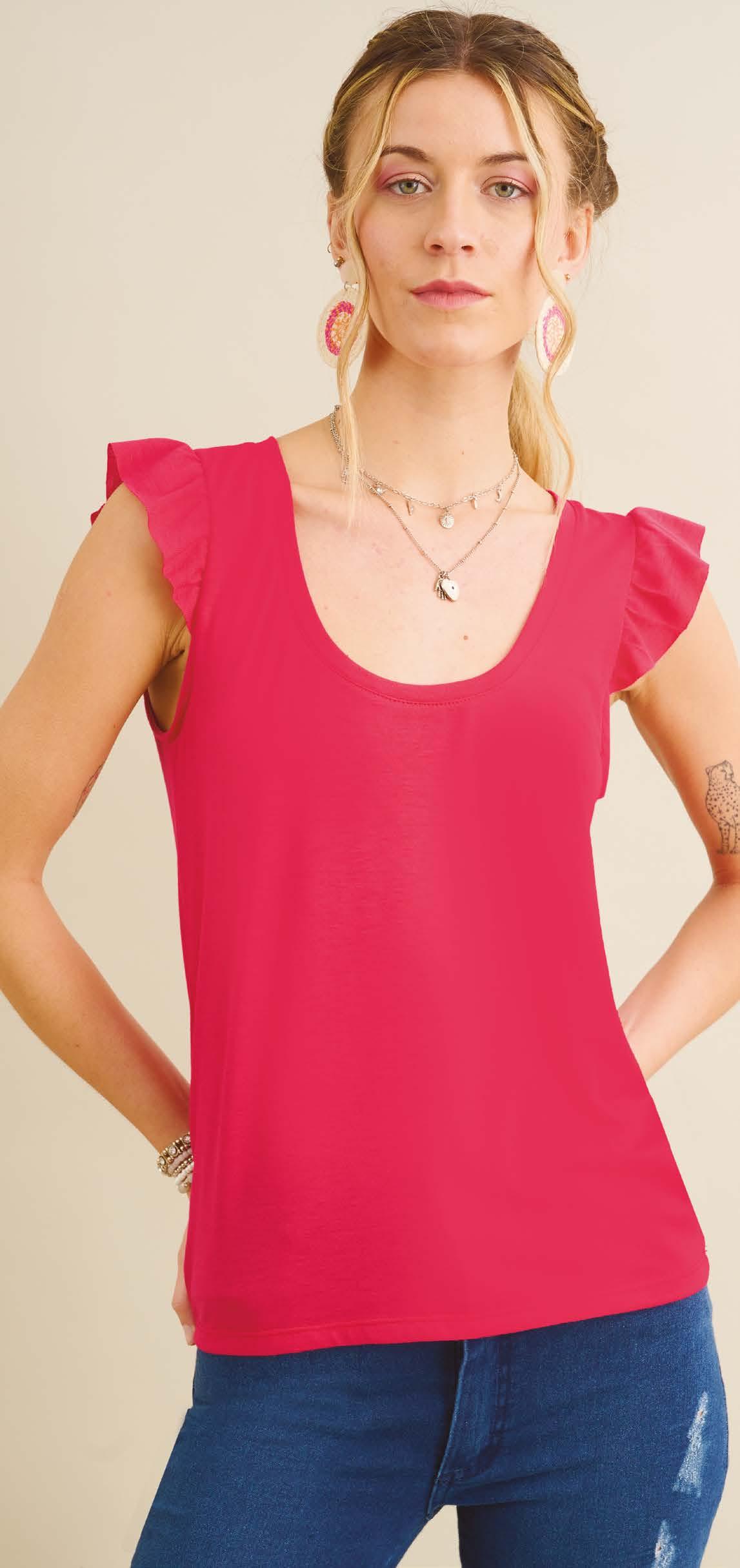MUSCULOSA ART. B877-34 Confeccionada en viscosa con volados en breteles. Línea clásica. Color: Naranja (26) Talles: 1 - 2 - 3 - 4 PRECIO REGULAR $898 ¡Ahorrá $449! $449 5 BOHEMIAN
