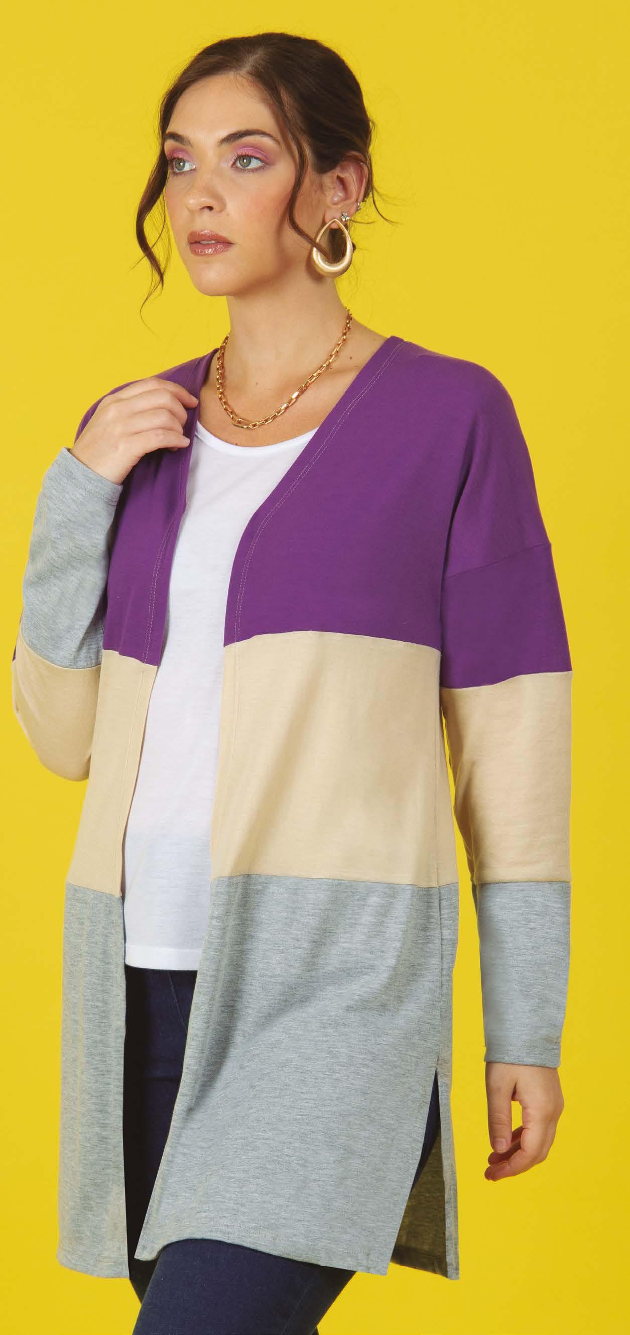 PRECIO REGULAR $1780 $979 ¡Ahorrá $801! SACO ART. B348-32 Confeccionado en viscosa melange. Recortes horizontales en mangas en viscosa azul y viscosa flamé verde. Color: Tricolor (64) Talles: 2 - 3 - 4 - 5 203 HOMBRES