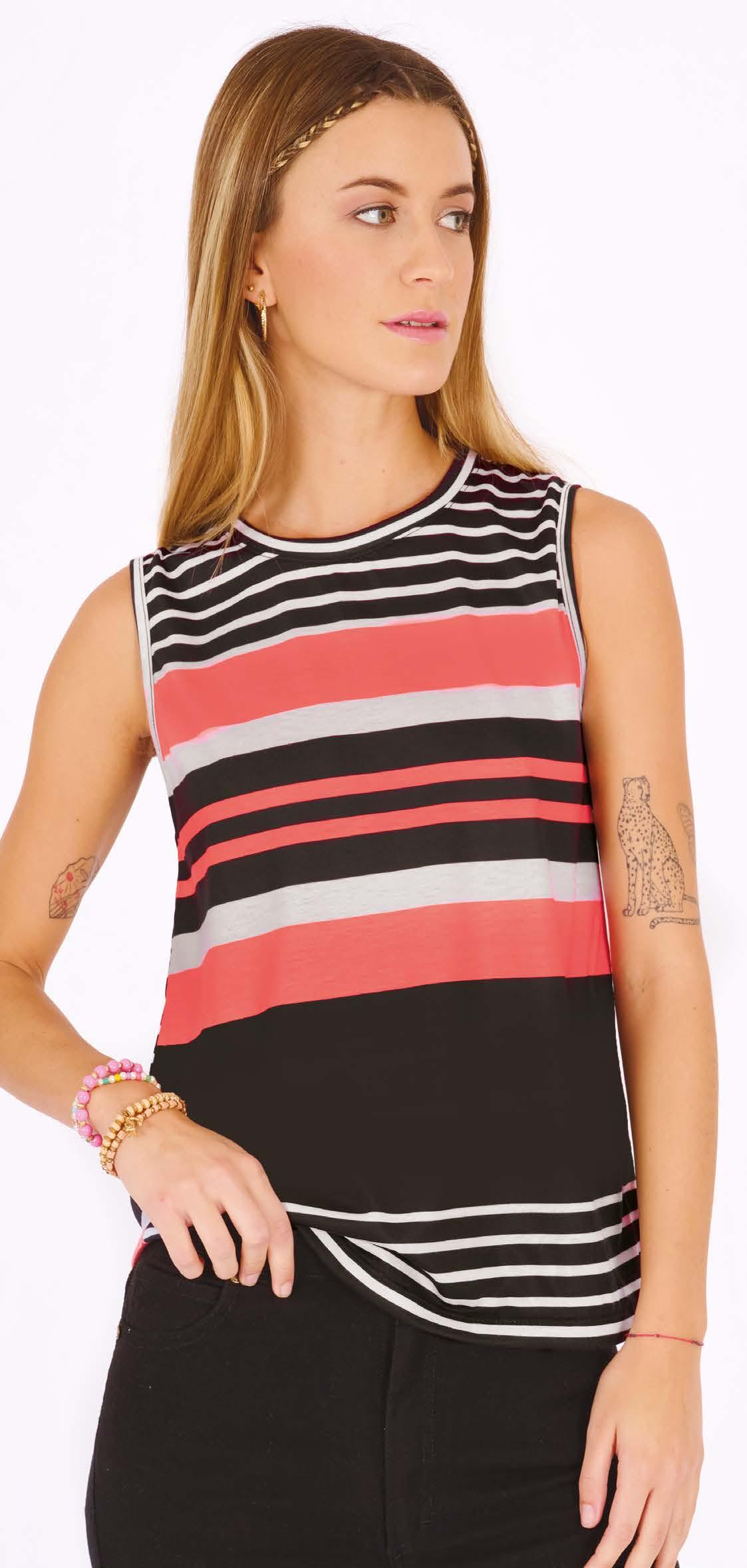 MUSCULOSA ART. B582-34 Confeccionada en viscosa melange. Vivos en color negro.Estampa localizada en delantero. Color: Gris Topo (23) Talles: 2 - 3 - 4 - 5 PRECIO REGULAR $898 $449 ¡Ahorrá $449! PRECIO REGULAR $1318 $659 ¡Ahorrá $659! MUSCULOSA ART. B422-34 Confeccionada en viscosa negra con recorte en blanco. Estampa localizada en delantero. Color: Bicolor (31) Talles: 2 - 3 - 4 - 5 192