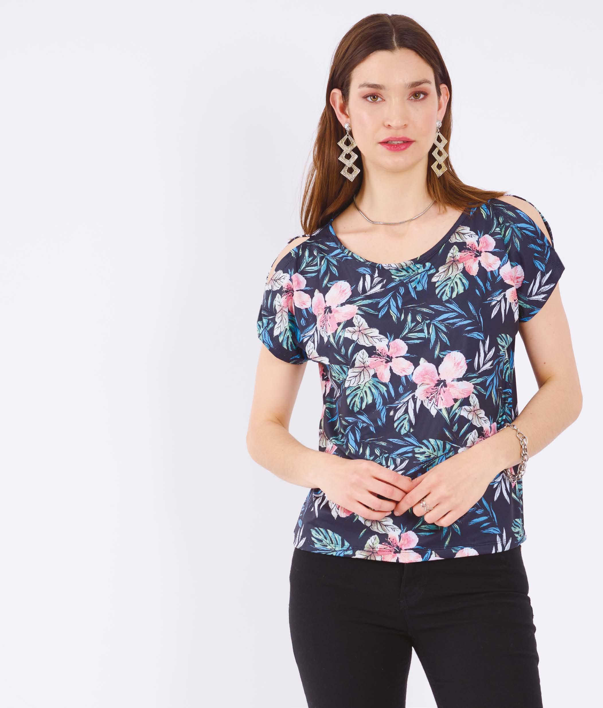 $2199 PRECIO REGULAR $558 $279 ¡Ahorrá $279! REMERA ART. B874-33 Confeccionada en viscosa estampada con volados y abertura en laterales. Línea clásica. Color: Est. Flores (51) Talles: 2 - 3 - 4 - 5 $279 227