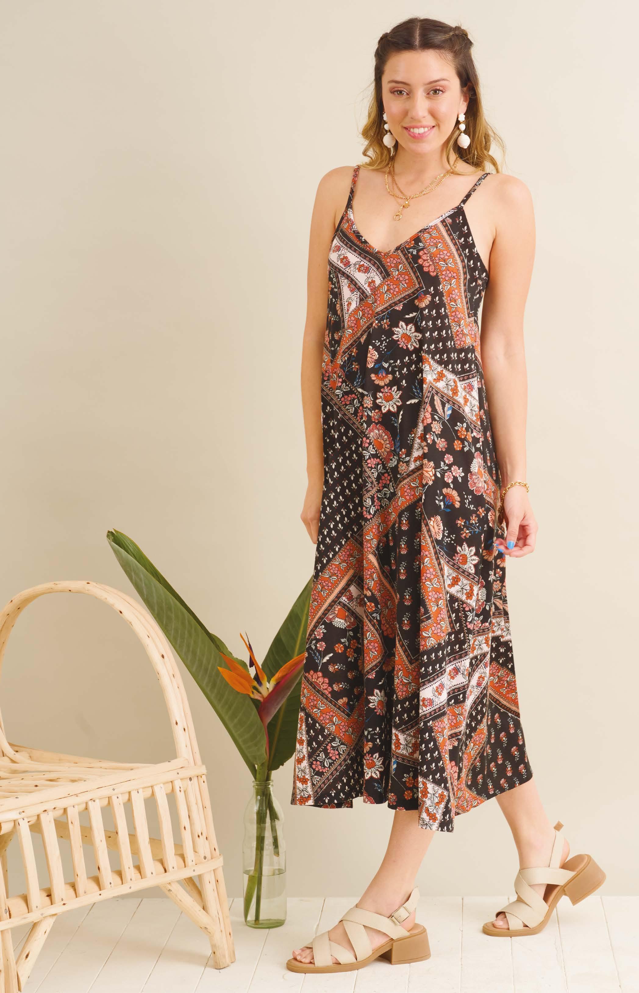 VESTIDO ART. B548-61 Confeccionado en viscosa estampada. Detalle de bretel en espalda. Línea clásica. Color: Est.Figura (52) Talles: 1 - 2 - 3 - 4 PRECIO REGULAR $1707 $939 ¡Ahorrá $768! 27 BOHEMIAN