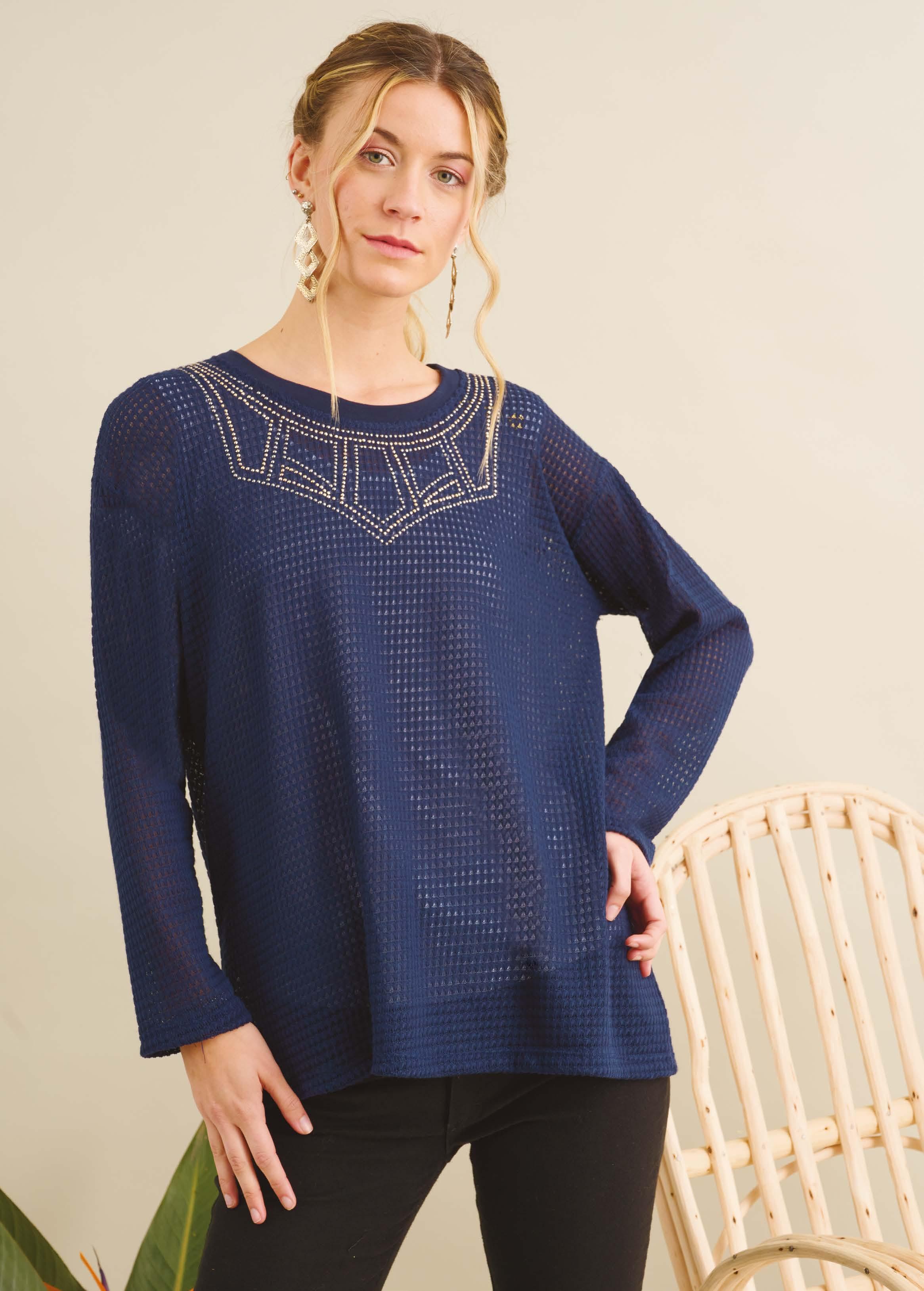 Tachas Tejido Desagujado PRECIO REGULAR $1498 $899 ¡Ahorrá $599! SWEATER ART. B387-39 Confeccionado en tejido desagujado con tachas en pechera. Línea clásica. Color: Azul (09) Talles: 2 - 3 - 4 - 5 17 BOHEMIAN