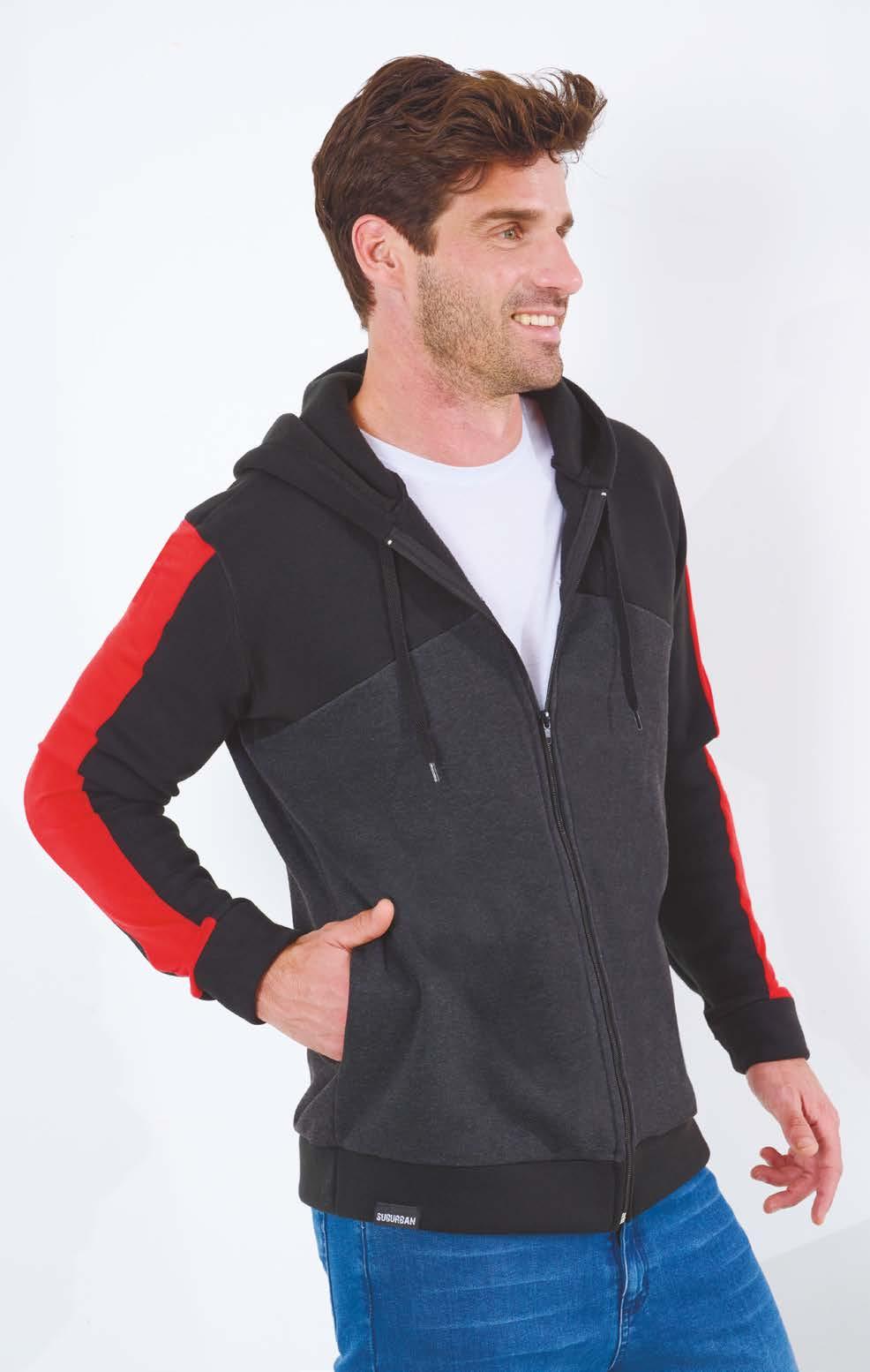 CAMPERA ART. B233-37 Confeccionada en rústico gris topo. Recortes en rústico negro y viscosa rojo. Color: Tricolor (64) Talles: 2 - 3 - 4 - 5 PRECIO REGULAR $2615 $1569 ¡Ahorrá $1046! Rústico 201 HOMBRES
