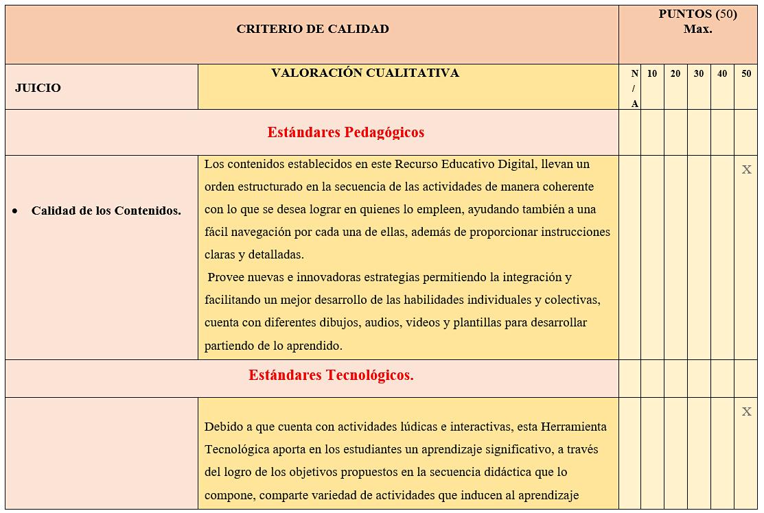 En lo referente a la selección de un recurso educativo digital abierto, se hace necesario en un primer momento evaluar la calidad del recurso, pariendo del análisis de los diferentes criterios de calidad propuestos por normas nacionales e internacionales que aprueban su eficaz utilización e implementación en el aula, garantizando así un proceso educativo favorable para todos los involucrados en la actividad educativa.