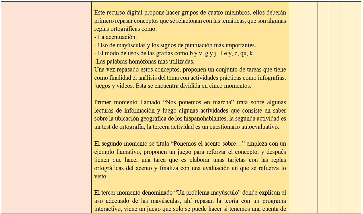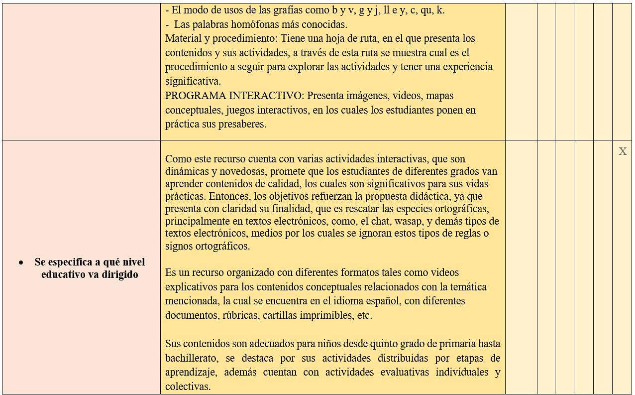 EL RECURSO EDUCATIVO SELECCIONADO PARA REALIZAR EL ANÁLISIS EVALUATIVO ES “LA BRIGADA ORTOGRÁFICA”, EL CUAL FUE TENIENDO EN CUENTA DEBIDO A LA IMPORTANCIA QUE TIENE EL RETOMAR LAS REGLAS ORTOGRÁFICAS QUE HAN PERDIDO DE MANERA NOTABLE SU VALOR, ES UN RECURSO QUE FRENTE A LA NECESIDAD DE SALVAR NUESTRA LENGUA, ES QUE SE PLANTEA SU MISIÓN, PARTIENDO DEL APRENDIZAJE DE COMO ÉSTE HA LLEGADO HACER EL VEHÍCULO DE COMUNICACIÓN DE TANTAS PERSONAS