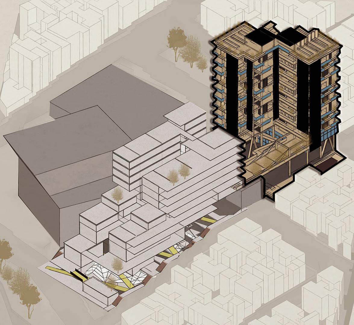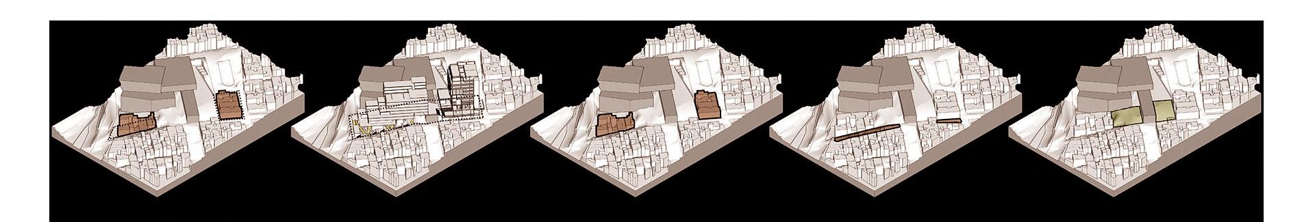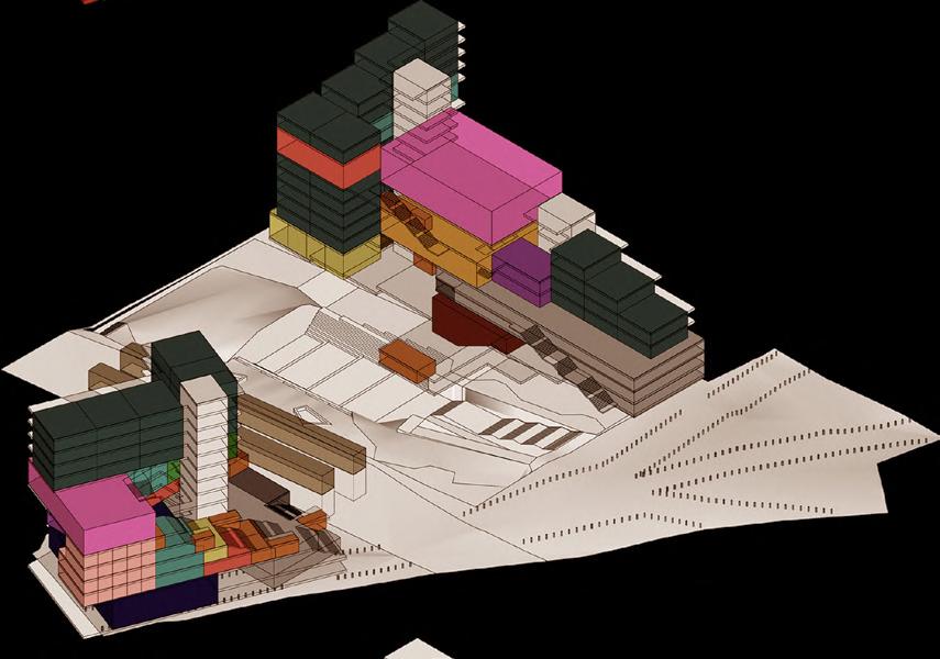 Se complejiza la intervención mediante un dispositivo de agenciamiento. Al adoptar un enfoque tipológico en lugar de funcional, el mestizaje se convierte en la estrategia operativa elegida, buscando una dinámica que enriquezca la forma urbana en sus aspectos estructurales, configuracionales y composicionales. Las operaciones formales incluyen interconexión, adyacencia, solapamiento y oblicuidad, creando un dispositivo de intermedialidad. Este se compone de volúmenes de actividad diversa que se integran tanto sobre el viaducto del metro como en las estructuras adyacentes, alterando la composición programática de estas últimas. Así, la infraestructura y la arquitectura en torno al eje de Bolívar trabajan en conjunto para generar nuevas dinámicas y actividades urbanas.