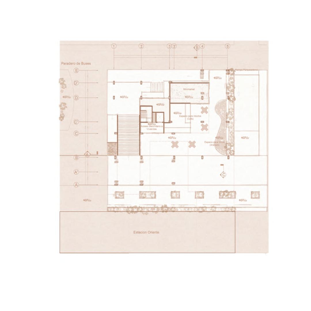 Generar un recorrido que conecte la quebrada Santa Helena con la Estación Oriente del Sistema Metro y a su vez con el paradero de buses alimentadores, potenciando así los espacios públicos existentes y a su vez redensificando con vivienda propuesta en niveles superiores para recuperar aquellas que fueron demolidas para darle paso a la estación. Se adecuan espacios destinados a personas de las distintas edades para que beneficien tanto a los habitantes del proyecto, como del sector, generando así una Convergencia Intergeneracional.