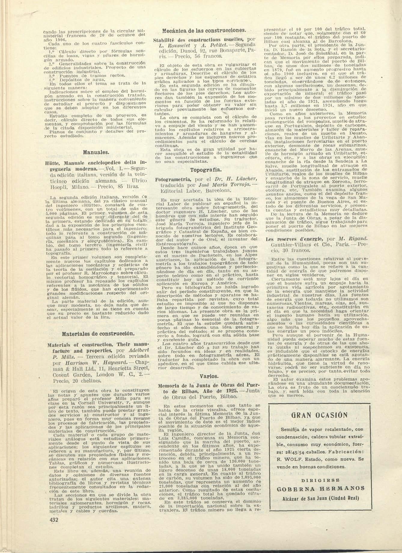 Jlat^Tials of construction. Their nianuíaeture and properties, por Adelbert P. Mills. — Tercera edición revisada por Harrison W. ííayujard—Chapman&HallLtd, 11,HenriettaStreet, Covent Garden, Ixjndon W C, 2.— Precio,20 chelines