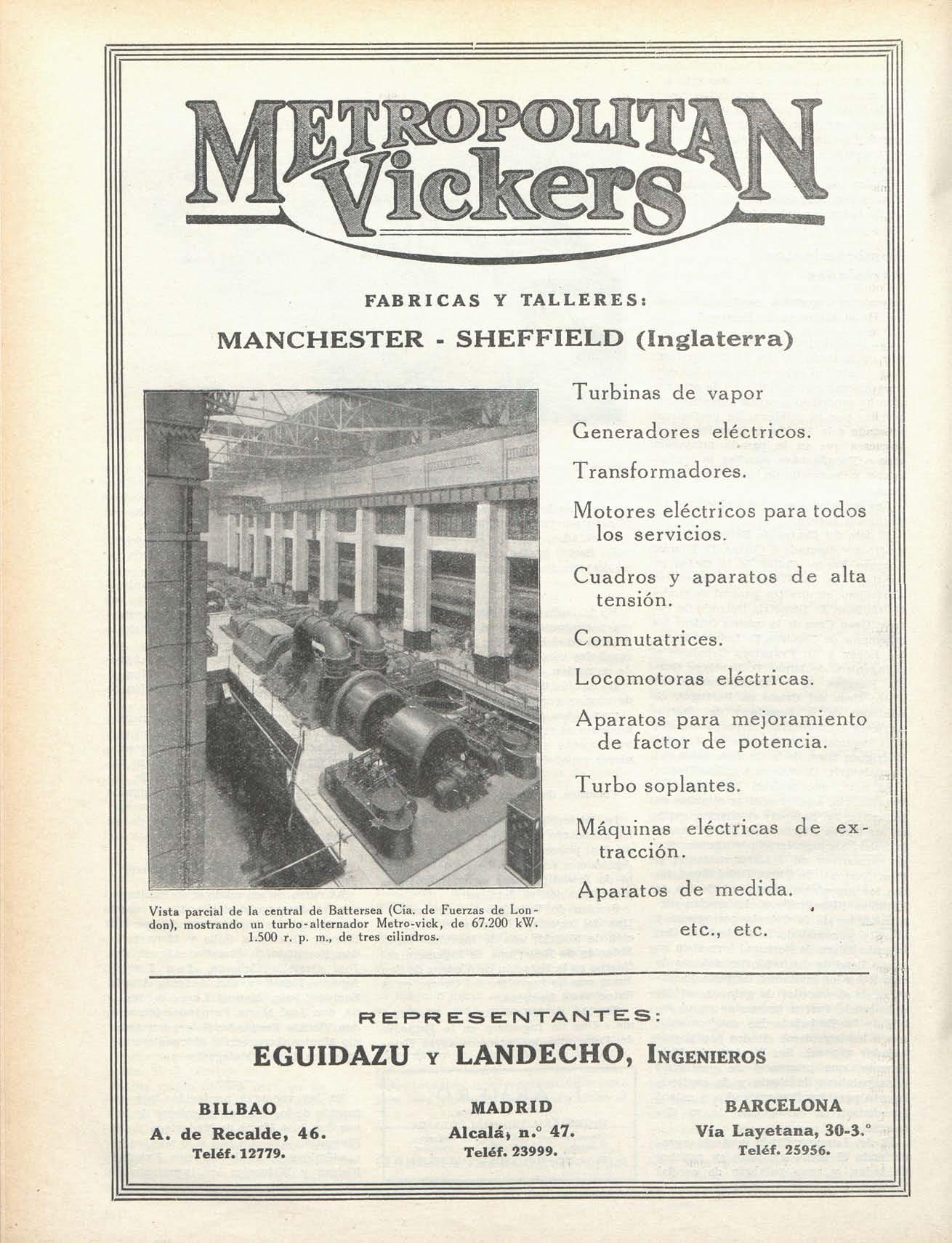 RERRESErsIXAlM-rES : j EGUIDAZ U Y LANDECHO , INGENIEROS! BILBA O A. de Recalde, 46 . Teléf. 12779. MADRID Alcalá» n.° 47. Teléf. 23999. BARCELONA Vía Layetana, 30-3,° Teléf. 25956.