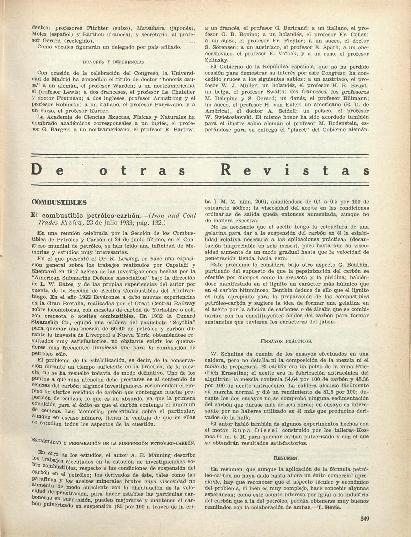 ció como miembro de honor a varias Asociaciones de ingenieros alemanas y extranjeras y fué también investido en el título de Presidente honorario de la Segunda Reunión de la Conferencia Mundial de la Energía, que tuvo lugar en Berlín en junio de 1930