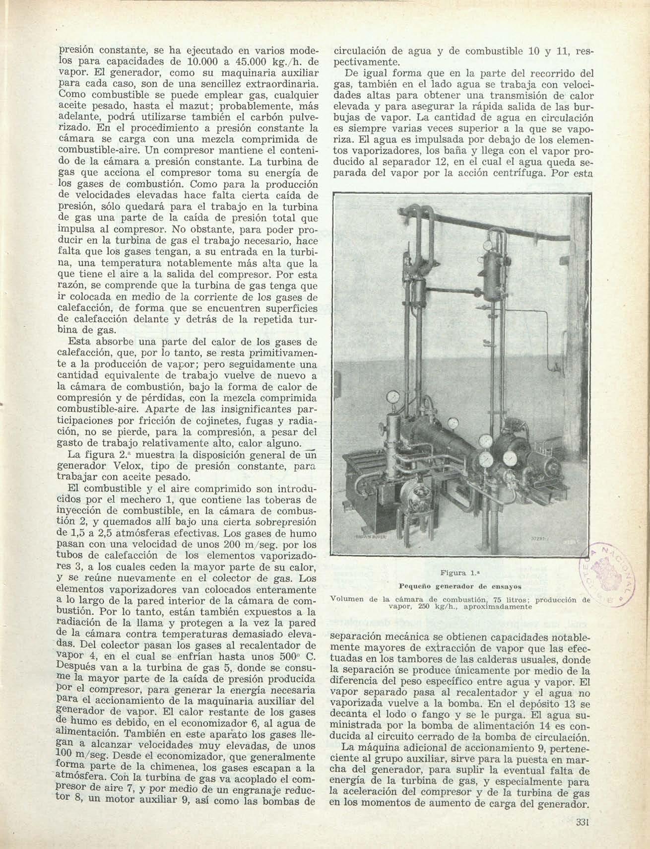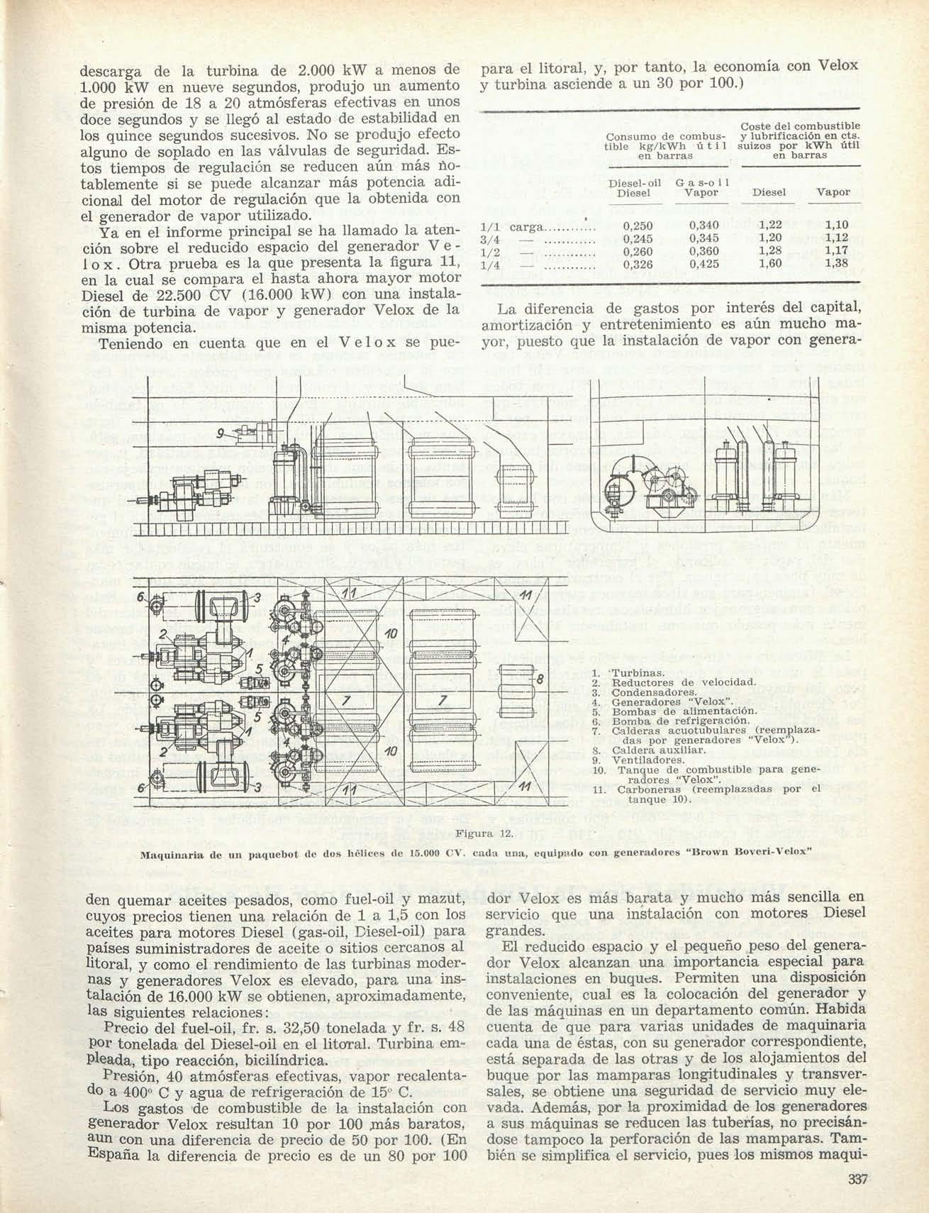 Vista parcial de la central de Battersea (Cía de Fuerzas de London), mostrando un turbo-alternador Metro-vick, de 67.200 kW. 1.500 r p m., de tres cilindros
