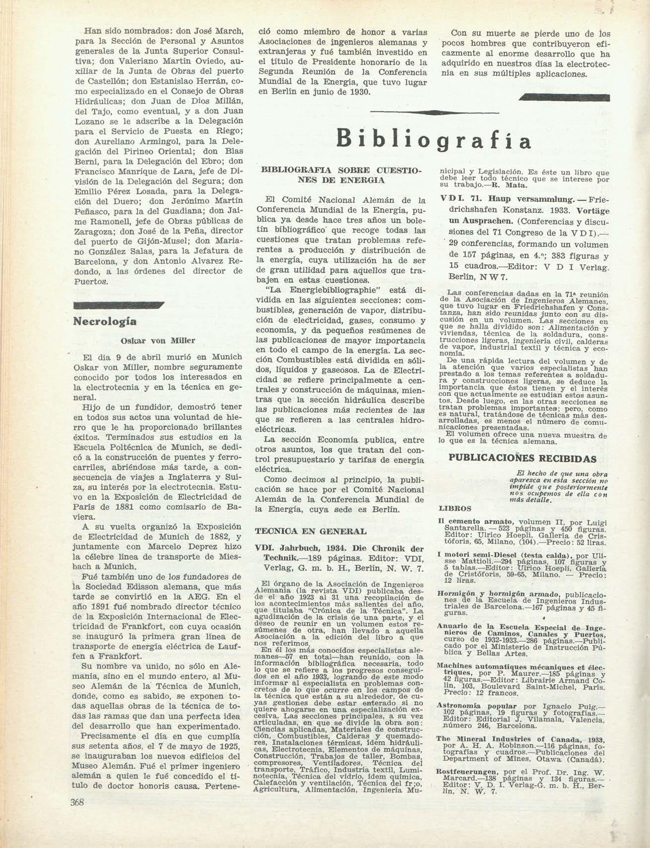 El dia 9 de abril murió en Munich Oskar von Miller, nombre seguramente conocido por todos los interesados en la electrotecnia y en la técnica en general