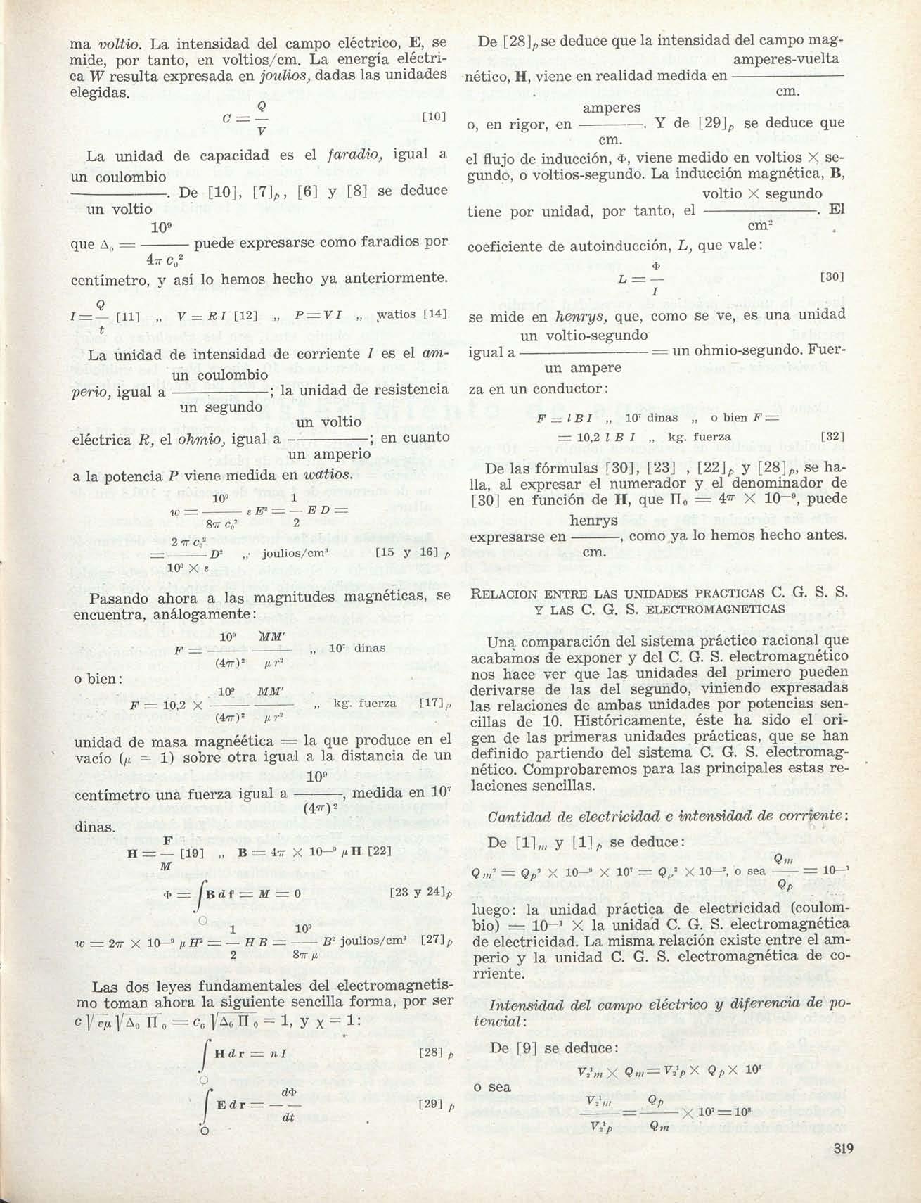 (1) Véase F. Emde, "Elektrische u magnetische Masseinheiten" ("Deutscher Kalender für Elektrotechnlker"), a quien hemos seguido, en parte, en esta exposición