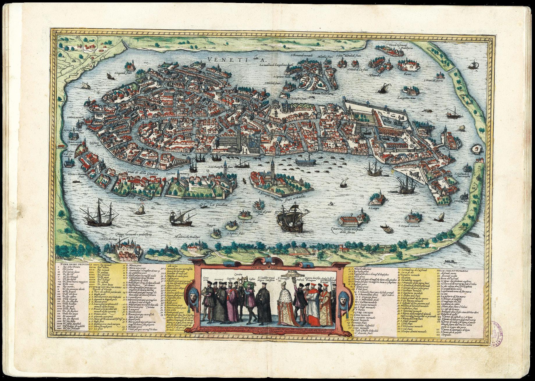 Cuando los europeos descubrían ciudades nuevas tenían que hacer comprensible su grandeza para sus lectores, lo que hacía necesaria la comparación con las ciudades que conocían. Hay múltiples ejemplos, y muchos de ellos proceden de viajeros que lo fueron al servicio de la monarquía de España, cuyo rey dominó las cuatro partes del mundo, como se decía en la época. Por ejemplo, lo hizo Hernán Cortés –comparando la plaza de Tenochtitlan con la de Salamanca– pero también llegó a la poesía de Lope de Vega, quien en El arenal de Sevilla escribía «Méjico y Venecia son / dos ciudades celebradas, / porque sobre el mar fundadas / con notable perfección / son ciudades y son mares». Pero Tafur en el siglo XV había hecho lo mismo en su libro de Andanças e viajes al comparar la grandeza de una ciudad desconocida con Valladolid, o la altura de una torre con la de Sevilla. Fray Juan González de Mendoza decía que los puentes sobre barcas de las ciudades chinas eran como el de Sevilla 31, y a mediados del siglo XVI en el Viaje de Turquía Matalascallando le preguntaba a Pedro de Urdemalas precisamente en esos términos: «Qué vecindad terná Constantinopla? ¿Es mayor que Valladolid?». El interés de Felipe II por las ciudades de sus reinos se tradujo en empresas artísticas tan ambiciosas como las vistas de Van den Wyngaerde32, pero la palabra que las describía permitió también satisfacer la curiosidad por las ciudades y tierras lejanas, como comprobamos en la biblioteca de Juan de Herrera, que bien puede explicar los intereses en la corte española por los mundos extraeuropeos: además de la recopilación de Juan Bautista Ramusio de la navegación, viajes y descubrimientos, de la que todos los curiosos por los nuevos mundos bebieron en el Renacimiento33, Herrera reunió descripciones de mundos lejanos no siempre impresas, como un manuscrito de «la vida de Hernando Cortés y el camino y conquista que hiço en Nueba España, manosecripto, en romanze». Para conocer mundos lejanos tenía también un Discurso de la ciudad de Constantinopla y un Viaje a Tierra Santa en romance, así como una «discrepzión de Palestina en papel ynpreso, colorido, en lienzo, en marco sin moldura, tiene de alto una vara y dos de largo». A todo ello se sumaba una Descripción universal del orbe, «barias descripciones de provincias y ciudades, estanpadas» –probablemente el Civitates Orbis Terrarum–, y libros sobre ciudades y tierras europeas como el origen de la ciudad de Verona en latín de Torello Saraina, un libro de la nobleza y antigüedad de Escocia en latín, o una historia