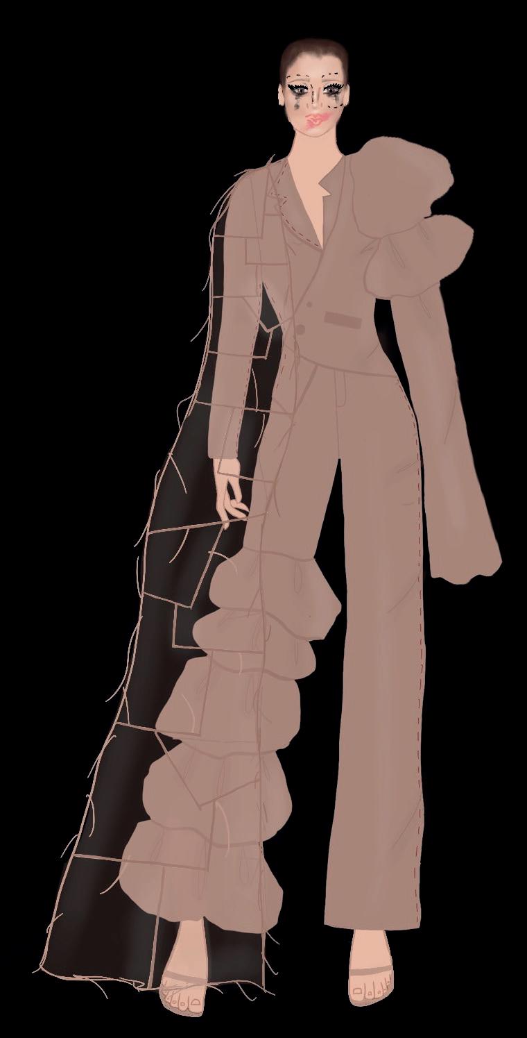 Para esta colección se tomó como fuente de inspiración la dismorfia corporal, trastorno mental caracterizado por la preocupación obsesiva generada por un defecto percibido en las características físicas. El concepto de la colección ‘Broken mirror’, gira en torno a la idea de una autopercepción distorsionada y el impacto que esto tiene en la imagen corporal. La industria de la moda juega un papel importante en la configuración de los estándares de belleza de la sociedad, a menudo promoviendo ideales de perfección poco realistas e inalcanzables. Al abordar este tema a través de una colección, se busca generar conciencia sobre las luchas personales que se experimentan con este trastorno, al tiempo que desafía los estándares sociales de belleza y promueve la autoaceptación.