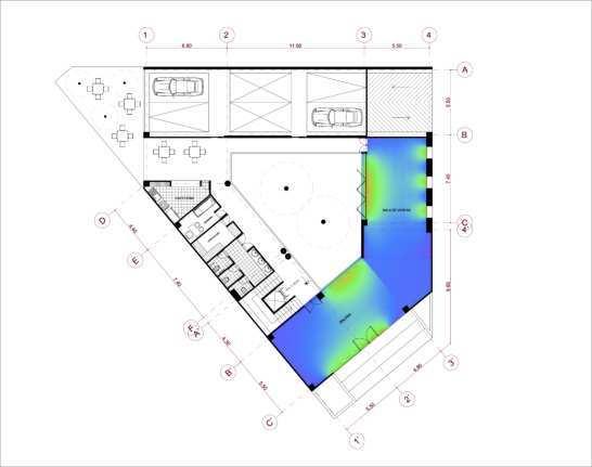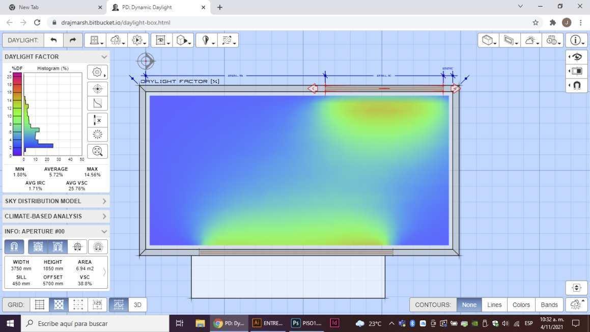 Seg˙nlasimulaciÛnseconcluye que el espacio tipo de las plantas 2 a 5 piso, cuenta con confort lumÌnico en toda su ·rea, esto por medio de ventanas y por la celosÌa que se ilumina por el patio central.
