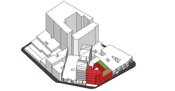 Para el edificio complementario se utiliza una modulacion de 10.80x9.90m, 10.80x11.60m y dos voladizos en cada extremo de 4.00m cada uno.