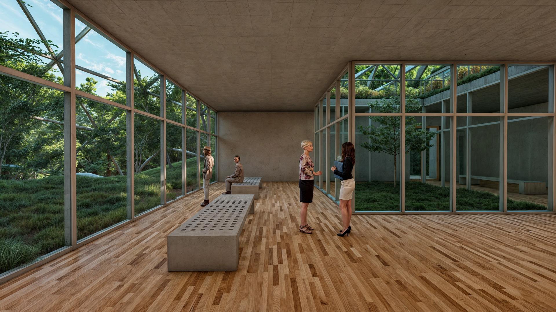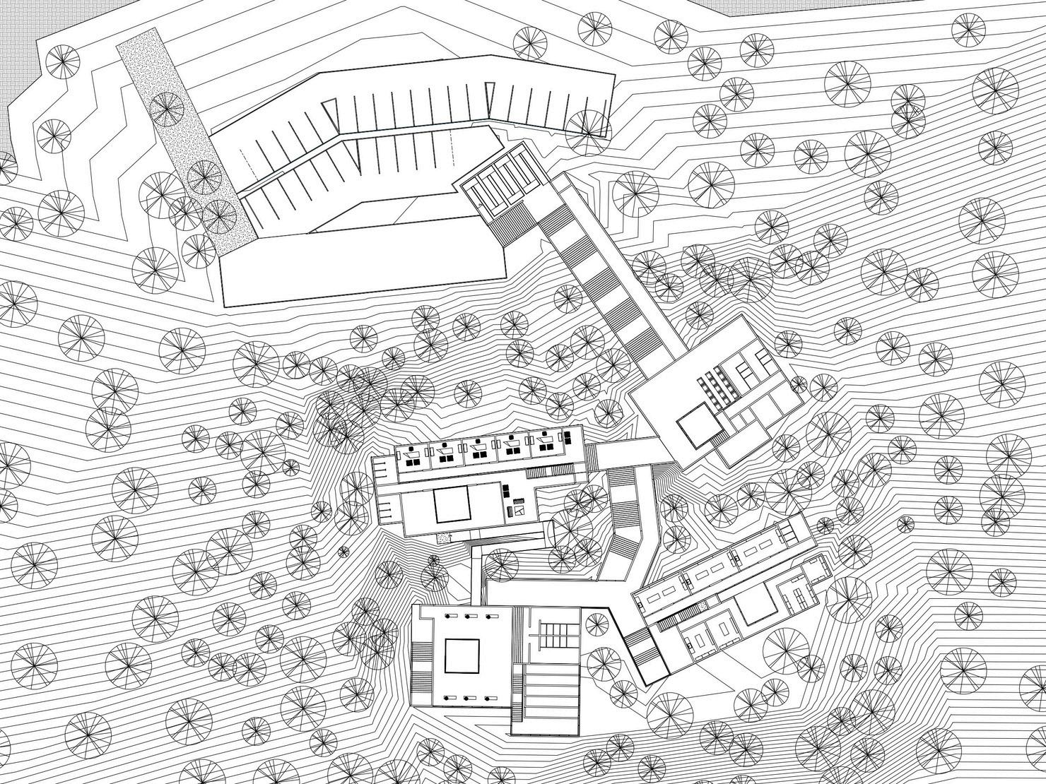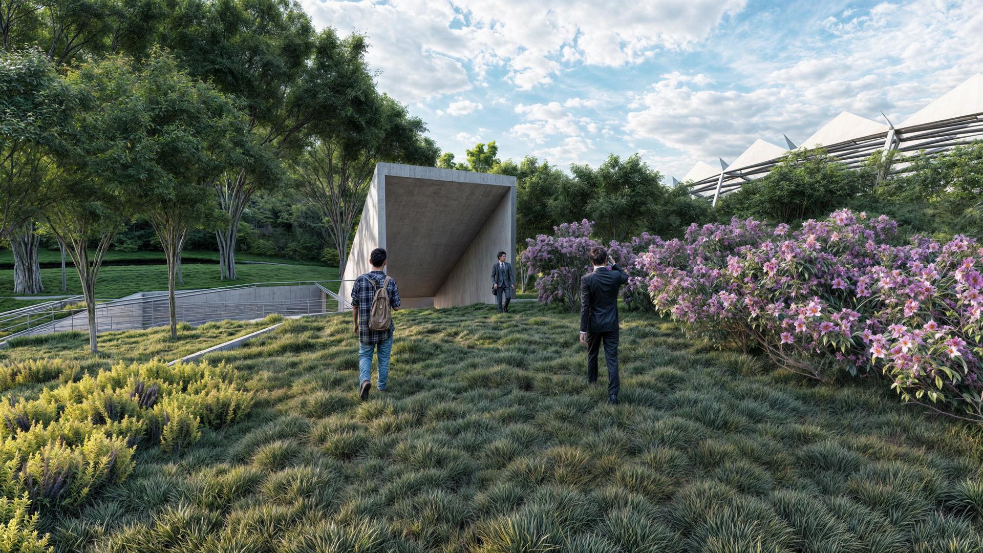 Se priorizó la integración de elementos naturales del entorno, como la topografía escalonada y la orientación solar, para maximizar la eficiencia energética y confort global del proyecto. Se estableció un hábitat simbiótico entre aves y humanos, utilizando los techos del proyecto como recorridos dentro del aviario, algunos parcialmente enterrados para resaltar la prominencia de la cubierta, elemento central del diseño.