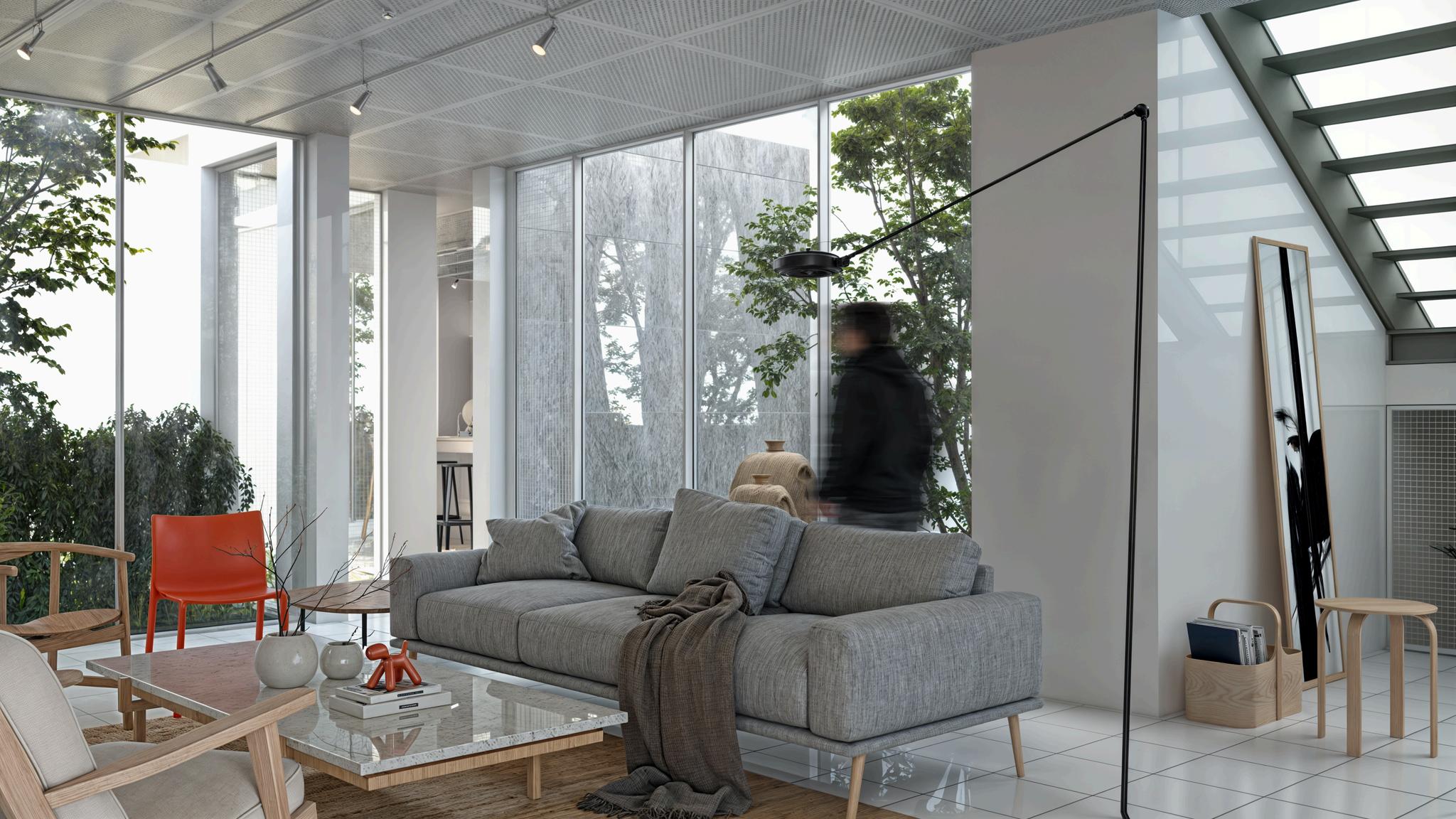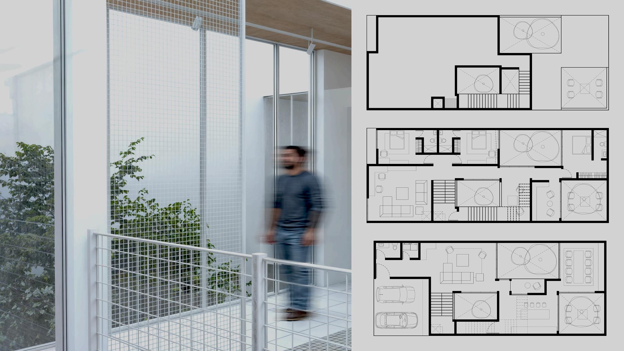 El diseño prioriza la funcionalidad sin dejar atrás la estética confortable y amigable de un hogar. Se crea una transparencia a través de cristales y ventanales que permiten la entrada de luz natural con patios internos que dan apertura natural sin comprometer la privacidad. Esta transparencia igualmente vincula los espacios, no solo en planos horizontales sino en planos verticales de la vivienda.