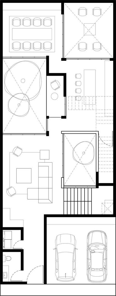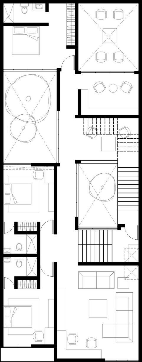 Se basó el proyecto en un predio en el centro de Monterrey con dimensiones retadoras, teniendo aproximadamente 6 metros de ancho por 50 metros de profundidad.
