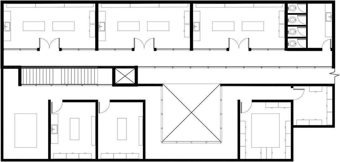 Con una distribución de módulos específica, se buscaron crear patios centrales que permitieran la entrada de luz y viento a todos los espacios dentro del edificio, abasteciendo las necesidades de los usuarios.