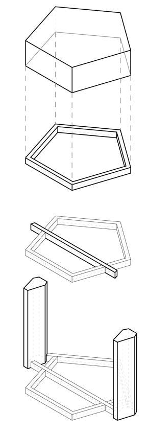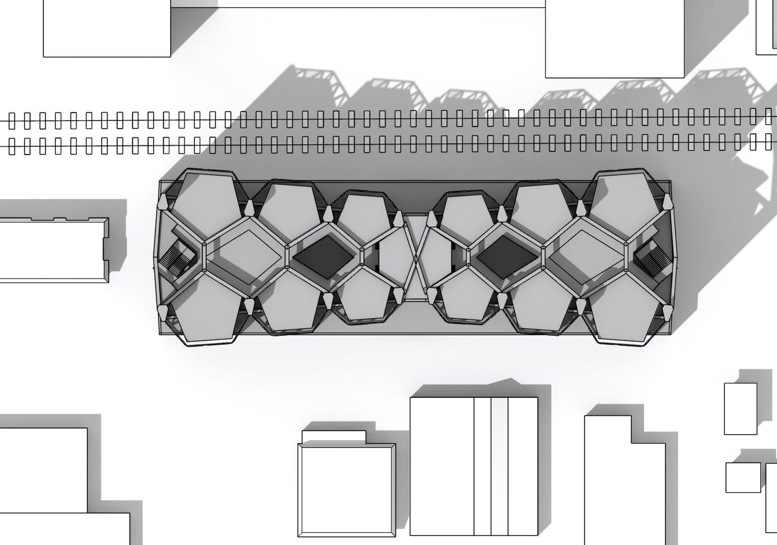 THIS PROJECT ENVISIONED AN ARTIST COLONY RETREAT FOR A PAINTER, A SCULPTOR, AND A WRITER—THREE FRIENDS SEEKING MUTUAL INSPIRATION. THE DESIGN EMPLOYS THE FIGURE-GROUND TECHNIQUE, WITH HEXAGONS AND SQUARES INTERSECTING DYNAMICALLY TO FORM A UNIQUE PATTERN. THIS GEOMETRY AIMS TO REFLECT THE DISTINCT PERSONALITIES OF EACH ARTIST WITHIN THEIR INDIVIDUAL WORKSPACES WHILE SIMULTANEOUSLY FOSTERING A CONNECTION TO A SHARED CENTRAL SPACE, ENCOURAGING CREATIVE EXCHANGE AMONG THEM.