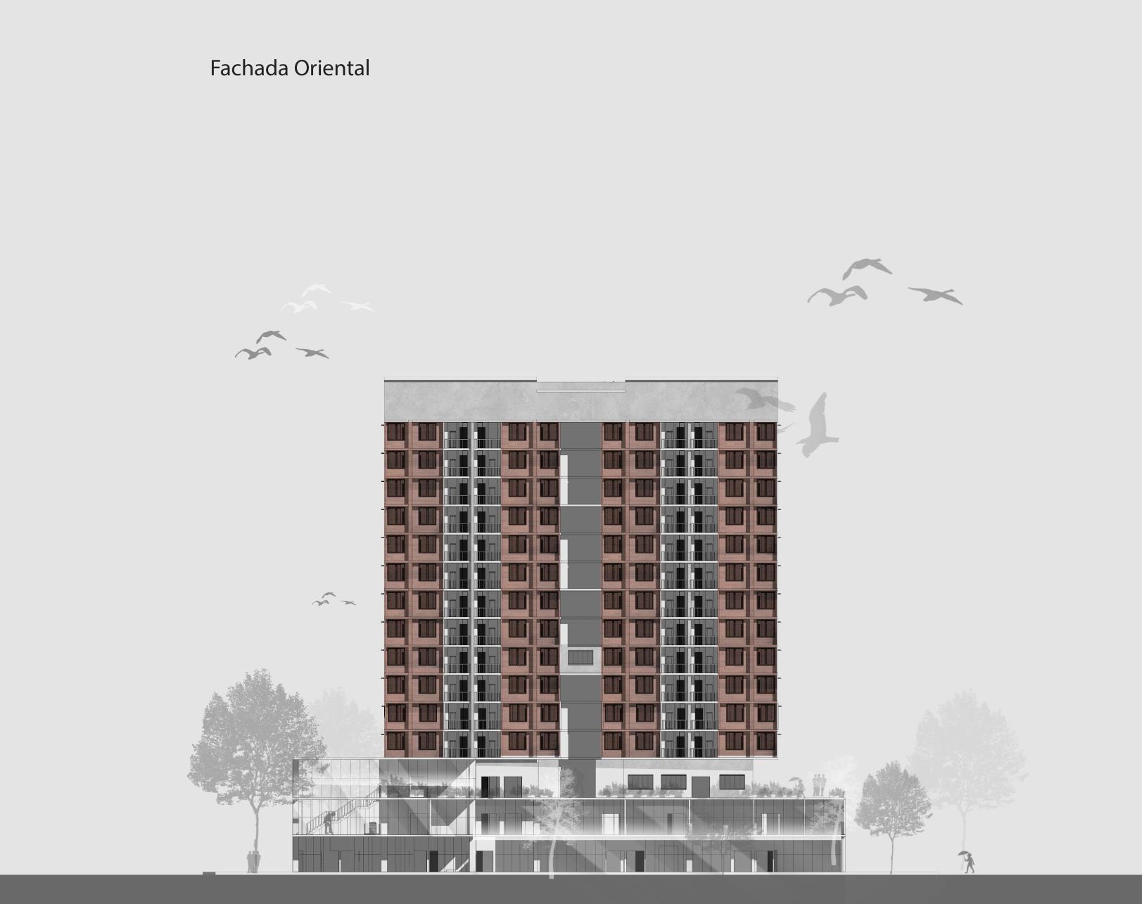 Esta misma característica se busca llevar hasta los pisos superiores, cada apartamento en fachada posee una cobertura vegetal que conforma un jardín horizontal en las fachadas longitudinal de la torre.