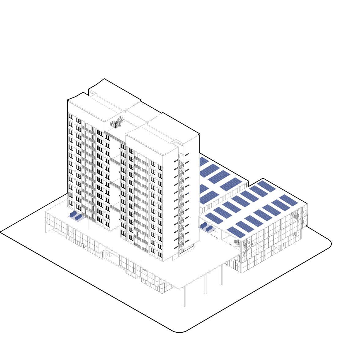 El proyecto busca mediante la captación,, recolección y almacenamiento de energías renovables como la energía solar ubicando en las cubiertas de la plataforma series de paneles solares que cubran el 80% de la cubierta total aprovechando su relación cenital.