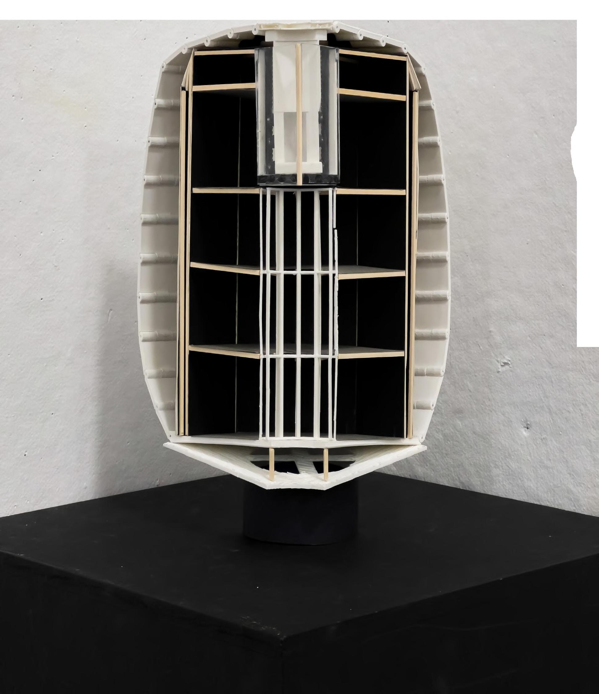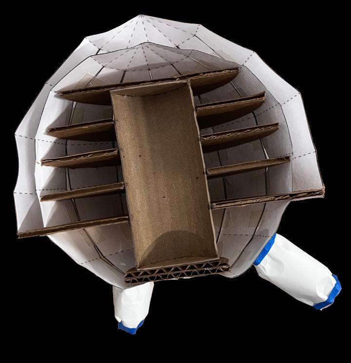STORAGE ENGINE ROOM VISUAL RESEARCH CHAMBER GYM RESIDENTIAL UNITS BR ENTRANCE HATCH CONTROL ROOM COLLABORATION SPACE WORK SPACE STORAGE BR DRONE BAY OS CS BR DINING ROOM ACTIVE LIVING ROOM KITCHEN PASSIVE LIVING ROOM LEVEL 1 LEVEL 2 LEVEL 3 LEVEL 4 ROOF PLAN OPENED SECTION CLOSED SECTION WALL SECTION 4’ 8’ 16’ WALL SECTION