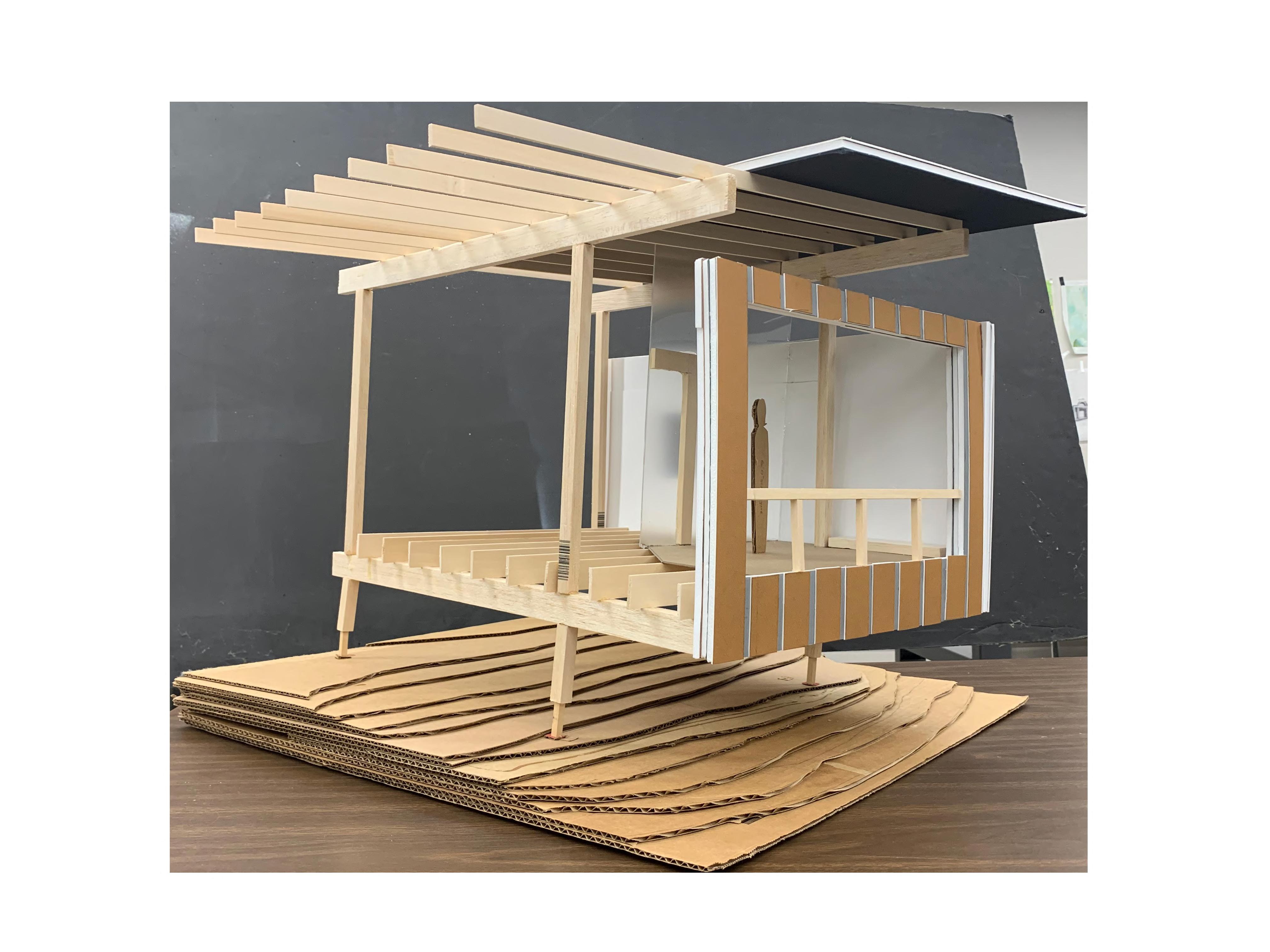 Plan and design of the campsite uses detailed spatial organizations and tectonics and structure to develop the architecture within the campsite.