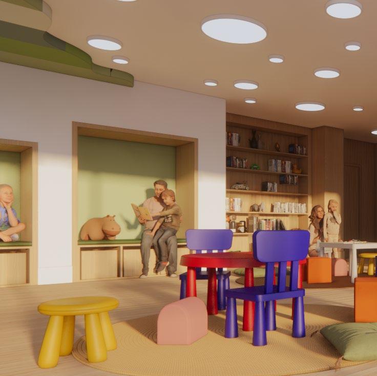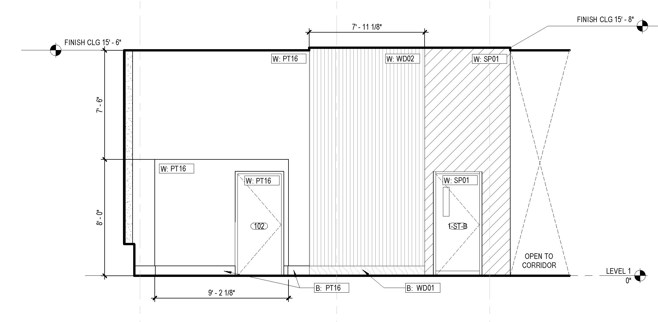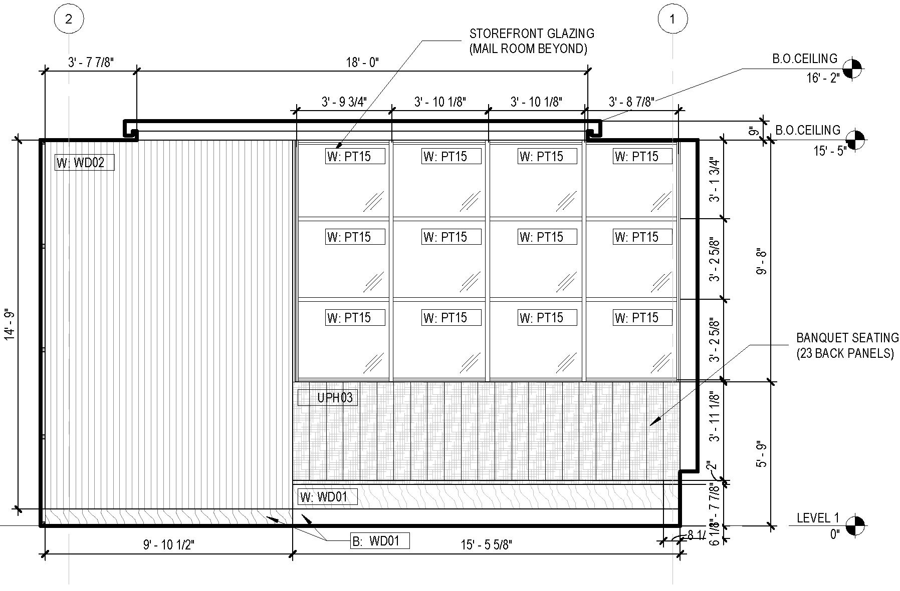 Progressing into construction documentation, translation of design into Revit involved production of enlarged floor plans, interior elevations, and a material key schedule. Included here is my documentation of the lobby, ground floor lounge, mail room, and children’s playroom.