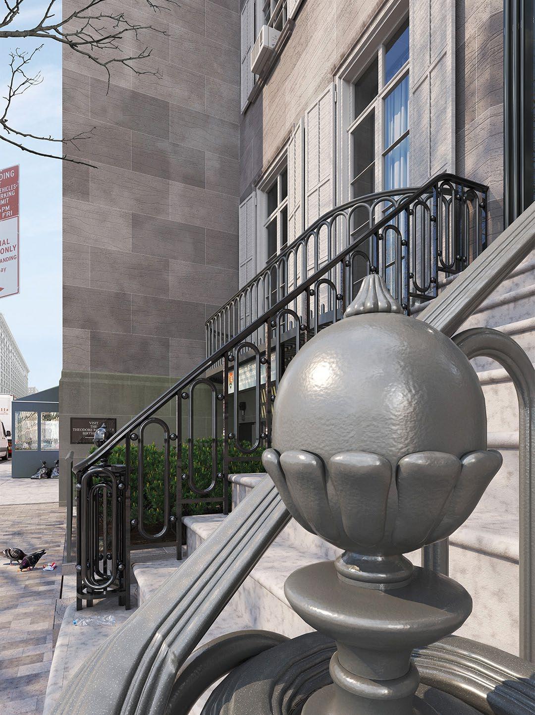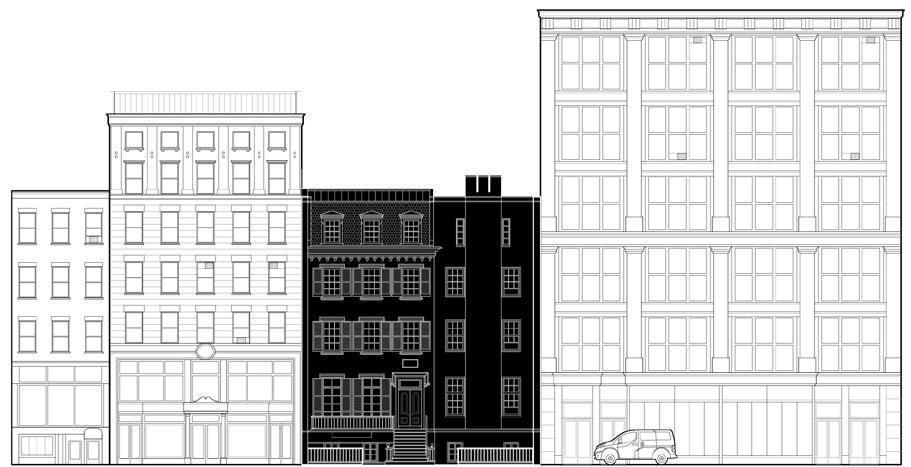 The replica reconstruction of the Theodore Roosevelt Birthplace is documented through a series of elevations, revealing the LPC’s hyper-fixation on maintaining style despite changes in urban context.