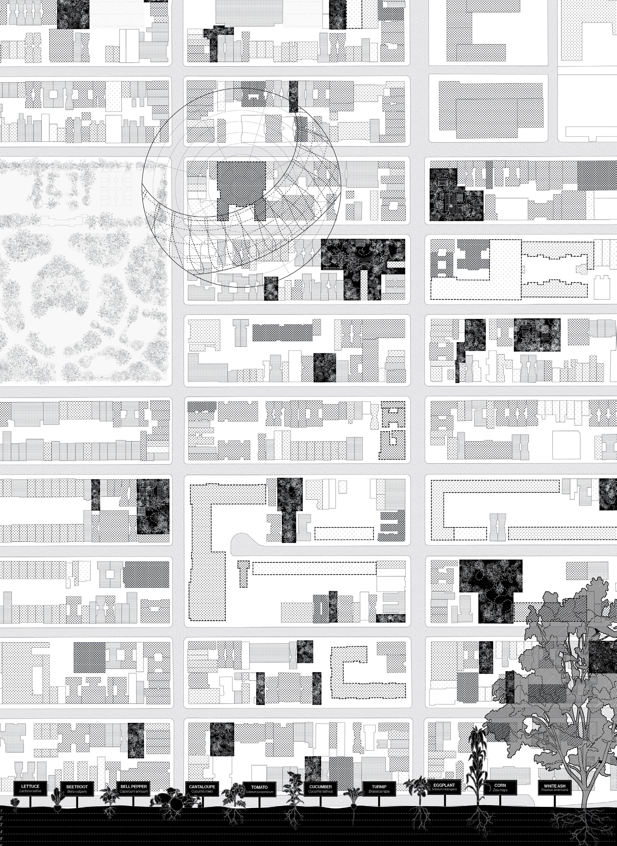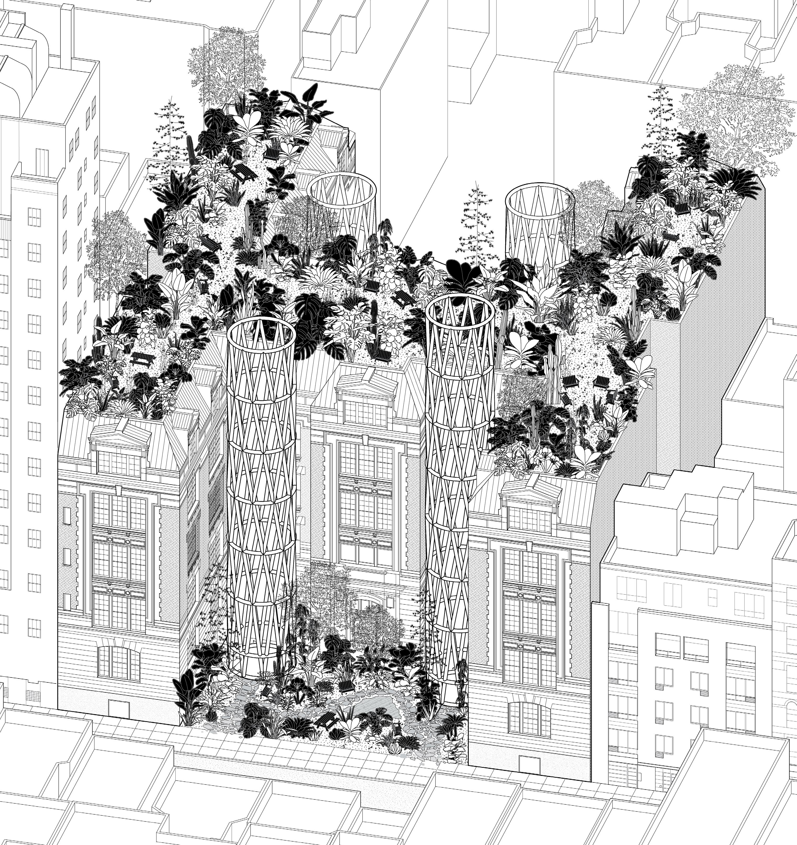 Advocating for greater participation within the landmarking process, as well as more productive use of historic structures, the project turns to Charas, the Nuyorican community organization that inhabited P.S. 64 prior to eviction, and its grassroots practices of neighborhood gardening for its intervention approach upon the early 20thcentury school building. Adaptive Re-Growth lends architectural addition to community use, hovering a functional structure over the pre-existing institution, both respecting the habitable function of historic fabric and providing novel opportunities for dialogue between government and the public regarding the treatment of landmarked architecture.