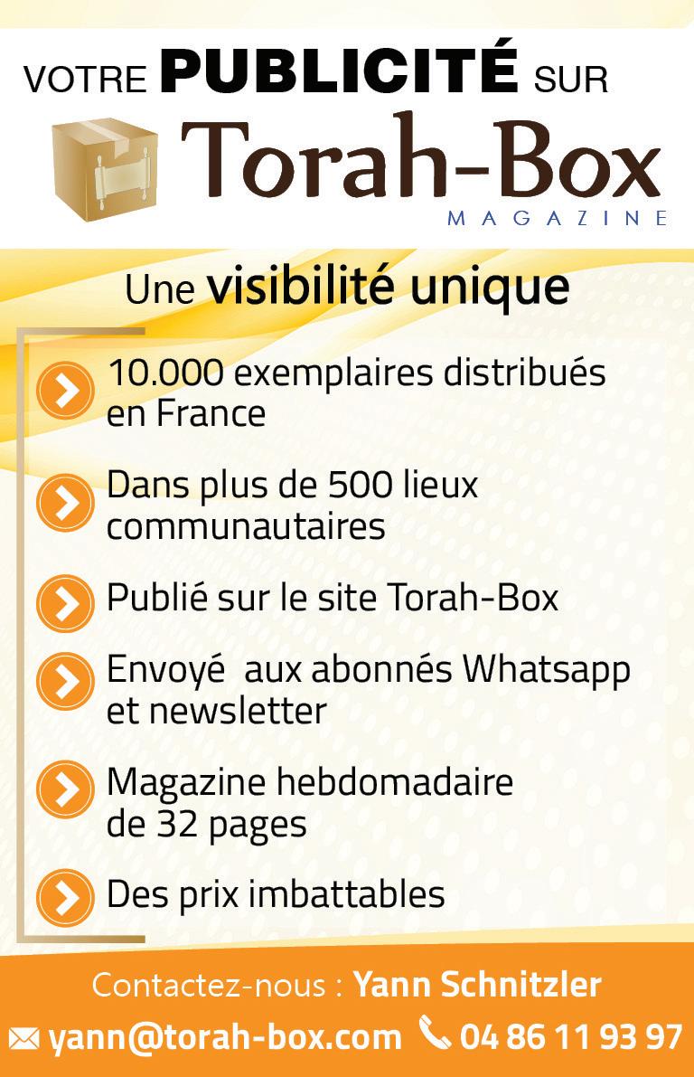 Responsable Publication : David Choukroun - Rédacteurs : Rav Daniel Scemama, Alexandre Rosemblum, Joana Abecassis, Rav Yehonathan Gefen, ‘Haya Herzberg, Elyssia Boukobza, Jeremie Berrebi, Rav Gabriel Dayan, Binyamin Benhamou, Rav Aharon Sabbah, Rav Avraham Garcia, Rav Its'hak Zilberstein, Sos cuisine - Mise en page : Dafna UzanSecrétariat : 01.80.20.5000 - Publicité : Yann Schnitzler (yann@torah-box.com / 04 86 11 93 97) Distribution : diffusion@torah-box.com