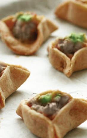 - Disposez les triangles de pâte sur une plaque de cuisson, badigeonnez d’œuf battu, saupoudrez de graines de sésame et enfournez dans un four préchauffé à 180°C pendant environ 20 min.